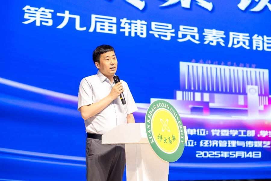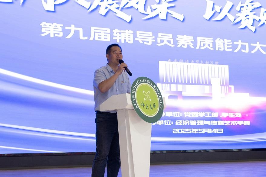 西安科技大学高新学院党委书记刘琳对本次辅导员素质能力大赛进行总结点评。他首先对赛事的成功举办予以充分肯定,称赞各参赛辅导员在比赛各环节的精彩表现,无论是案例分析时的思路清晰,还是谈心谈话中的温情关怀,都彰显出扎实的专业功底与对学生工作的热忱。