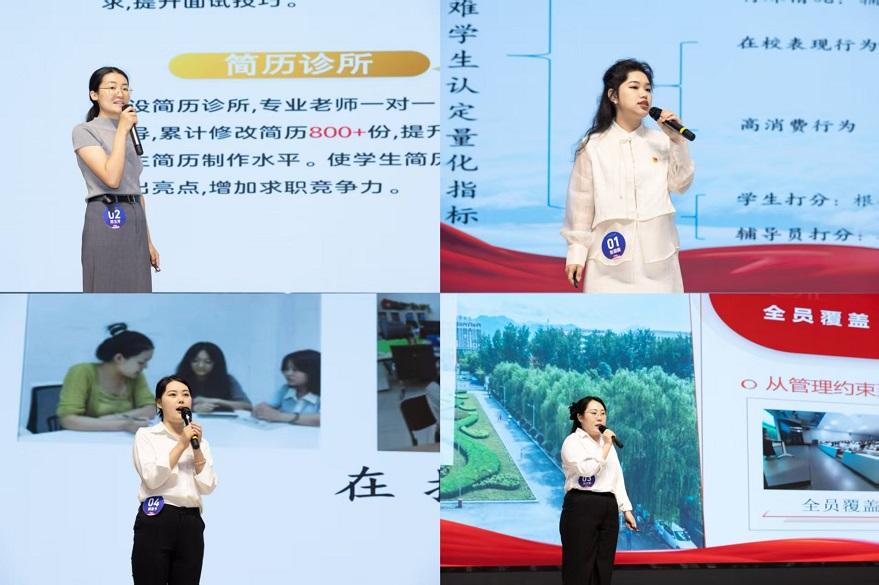 特色工作展示环节,这一环节辅导员们围绕学生工作中的创新实践、品牌项目、特色育人模式等内容进行展示。通过VCR纪实影像、主题演讲等形式,系统呈现了自己在思政教育、心理护航、学风建设、就业指导等领域的特色做法。其中,"一站式"学生社区管理模式、红色文化育人工程、精准就业帮扶体系等创新工作尤为亮眼。一个个鲜活的案例、一项项扎实的举措,生动诠释了高新辅导员们“以学生为中心”的育人理念和“敢想敢为”的责任担当。