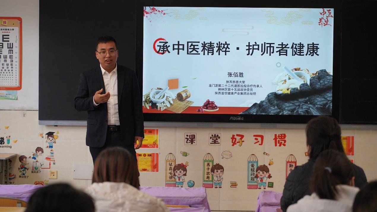 三秦都市报-三秦网讯(记者 代泽均)11月19日,中医非遗代表性传承人张佰胜老师前往西安市未央区长乐第二小学,开展中医健康专题讲座。此次活动以“普及中医知识、守护教师健康”为核心目标,将专业中医知识与教师职业需求精准对接,为该校教职工提供了兼具理论深度与实践价值的健康指导。