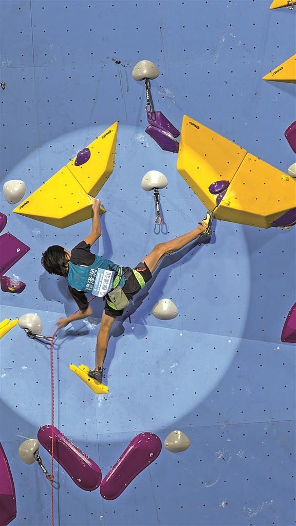 11月13日,穆泽润在十五运会攀岩项目男子难度比赛中(资料照片)。