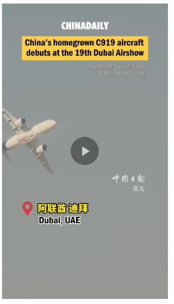 China's homegrown C919 aircraft made its debut at the 19th Dubai Airshow. Sameer Alhashmi, CEO of Arzana Aviation Consultancy, told China Daily that the C919 has great potential in markets such as Africa.