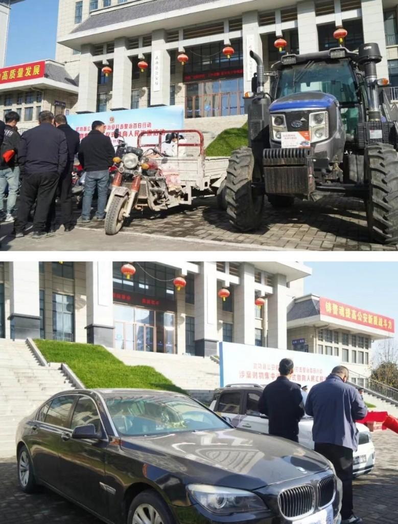 仪式上,民警将追回被盗被骗的1587万元、宝马汽车1辆、大型拖拉机1辆、老年代步车1辆、三轮摩托1辆、两轮摩托车一辆、电动两轮自行车3辆、山地自行车1辆、手机4部、烟酒等等总价值1600万元的涉案财物集中发还给受害群众,充分彰显公安机关打击违法犯罪的坚定信心和决心。受损群众怀着激动和喜悦的心情将自己的被骗财物领回,并将一面面锦旗送到办案民警手里,对武功公安全力破案、及时追赃挽损的辛勤付出表示深深的感谢。