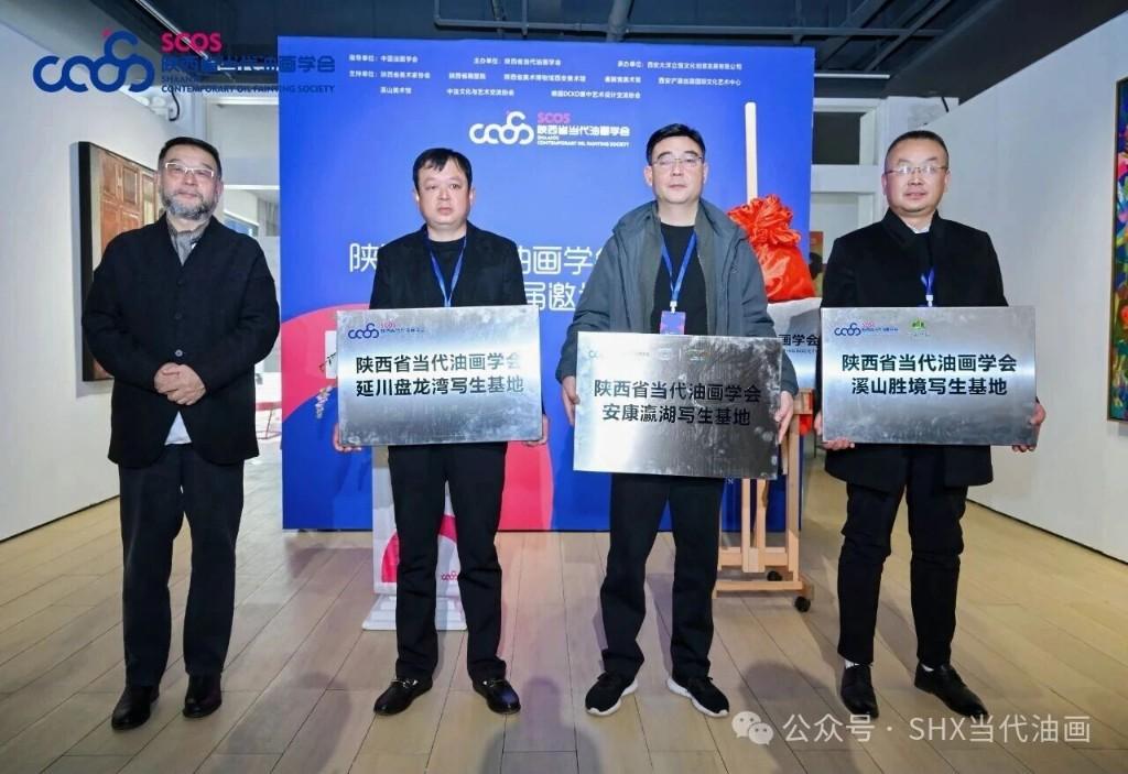 会上,学会与汉中市美协及照金溪山胜境、陕文投安康瀛湖景区、延川盘龙湾三大写生基地签署合作协议,并举行揭牌与授牌仪式。
