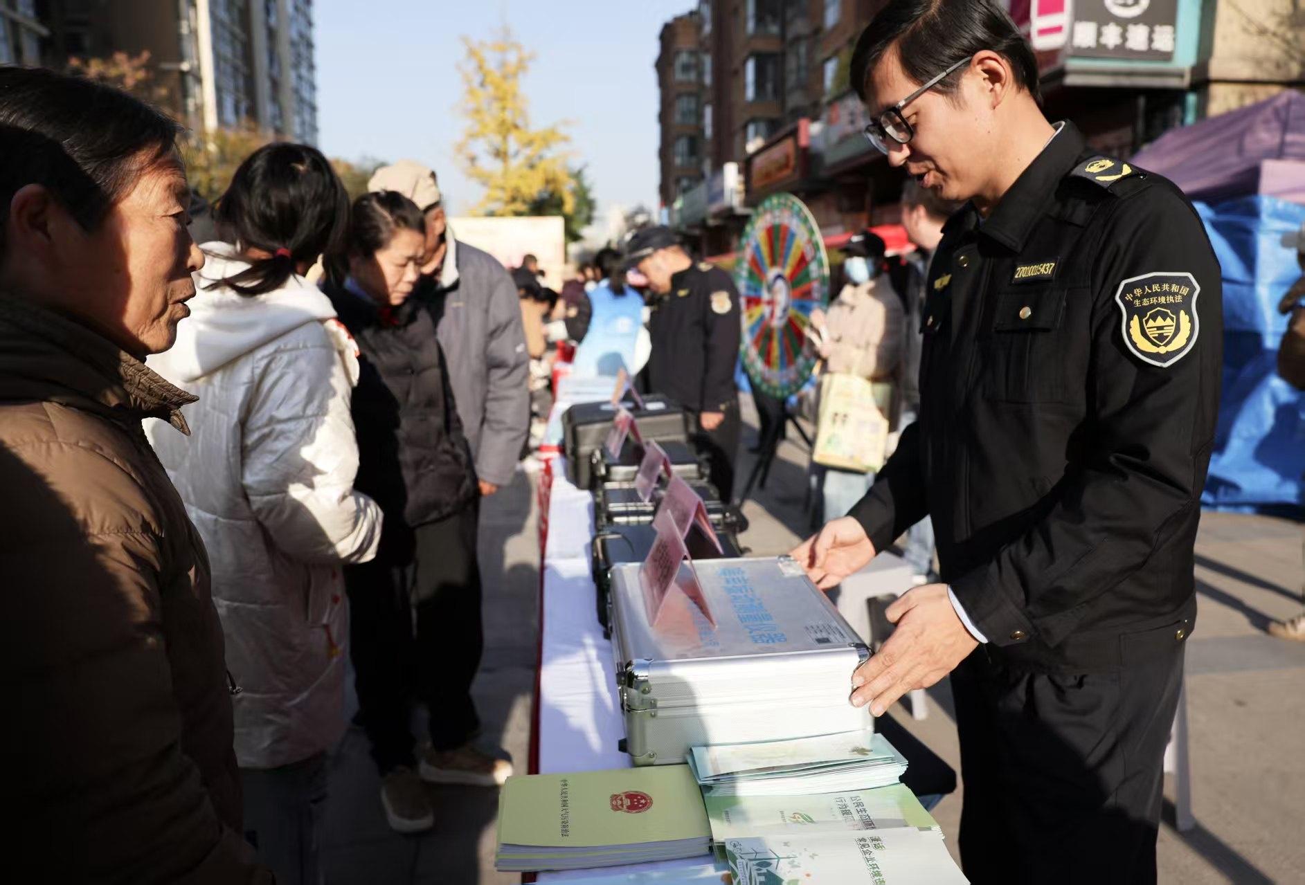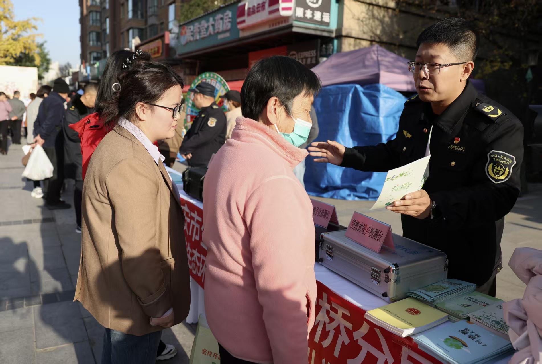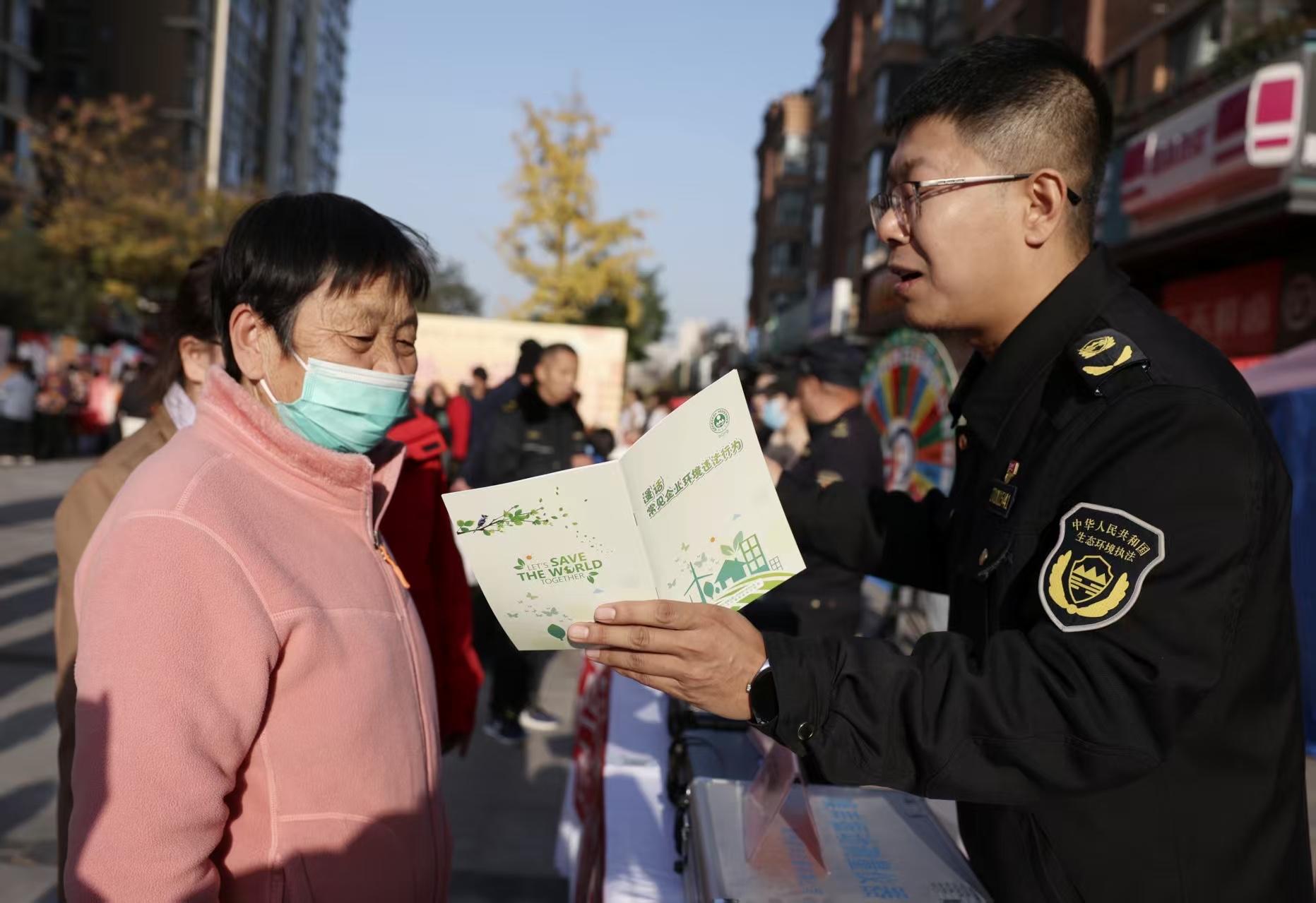 三秦都市报-秦闻讯(记者 陶颖 代泽均)11月21日,西安市生态环境局灞桥分局、西安市生态环境保护综合执法支队灞桥大队走进灞桥区席王街道普华浅水湾步行街广场开展宣传活动,通过现场展示执法设备、解答群众咨询、普及环保知识等形式,拉近与市民的距离,传递绿色环保理念。