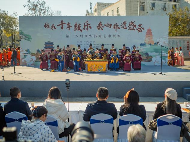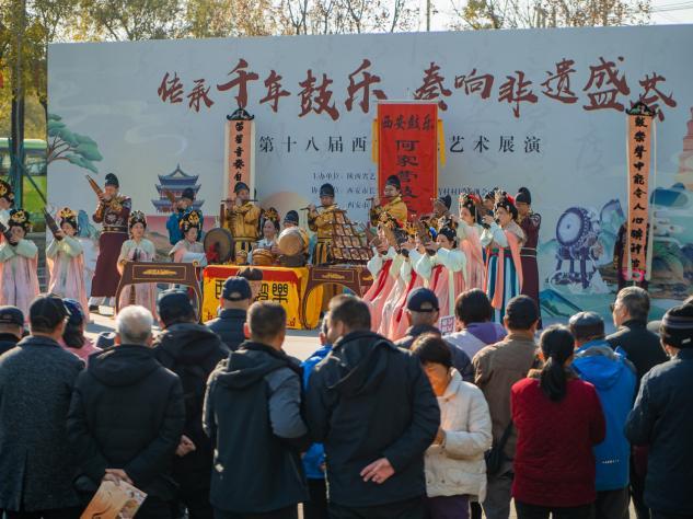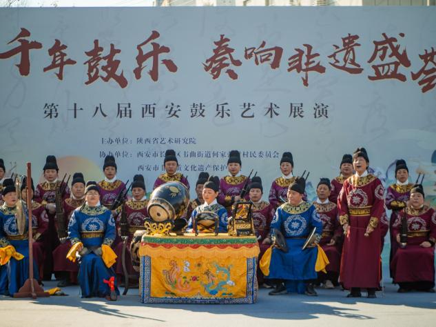 三秦都市报-三秦网讯(张小川 记者 李佳 )11月21日,由陕西省艺术研究院主办,西安市长安区韦曲街道何家营村村民委员会、西安市非物质文化遗产保护协会协办的第十八届西安鼓乐艺术展演,在长安区何家营鼓乐广场正式拉开帷幕。以“传承千年鼓乐,奏响非遗盛荟”为主题,这场为期三天的非遗盛宴,通过传统与创新交织的演出,让千年鼓乐在新时代焕发新生。