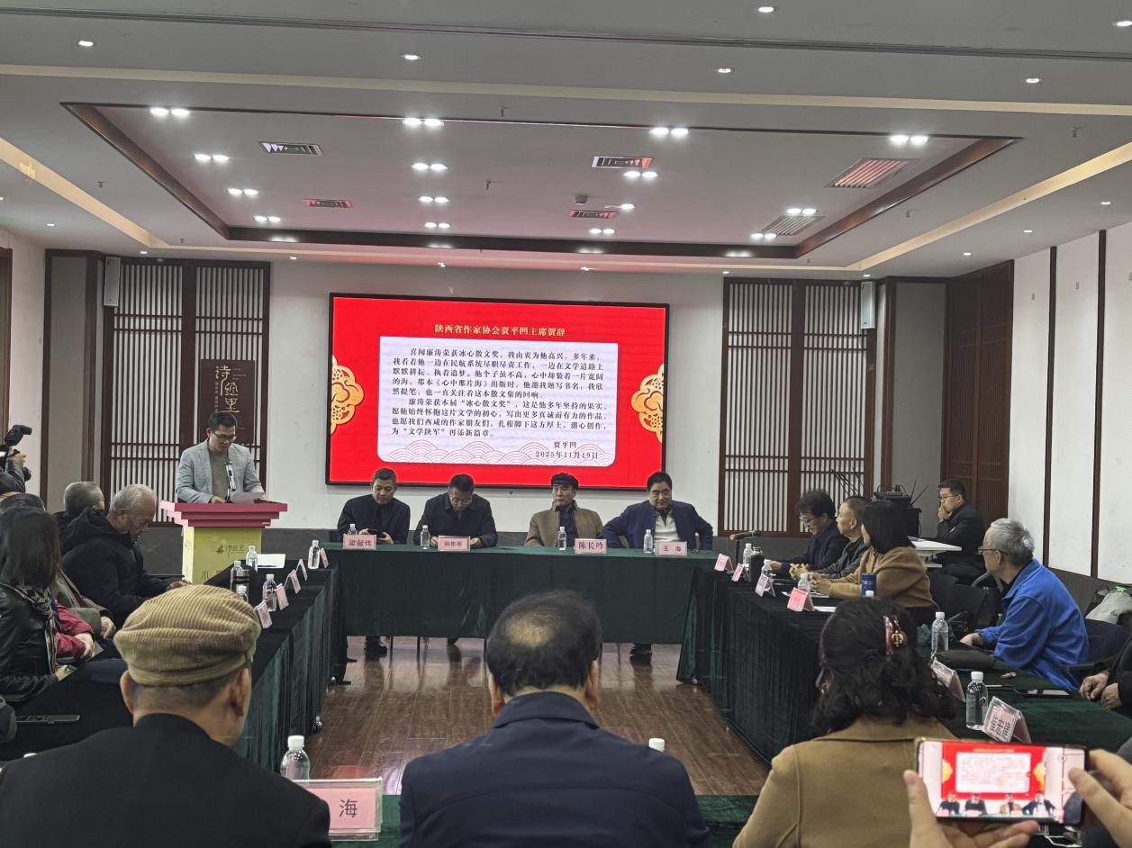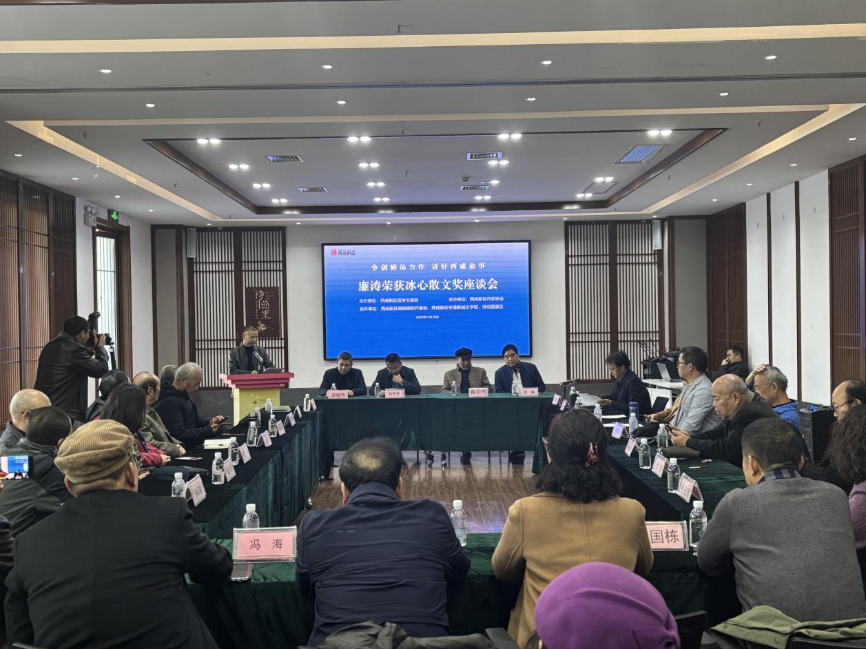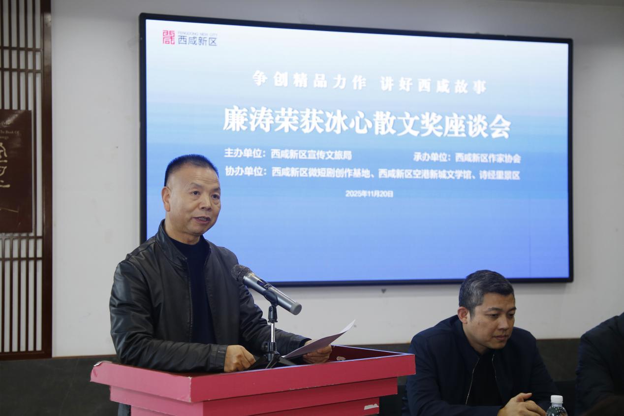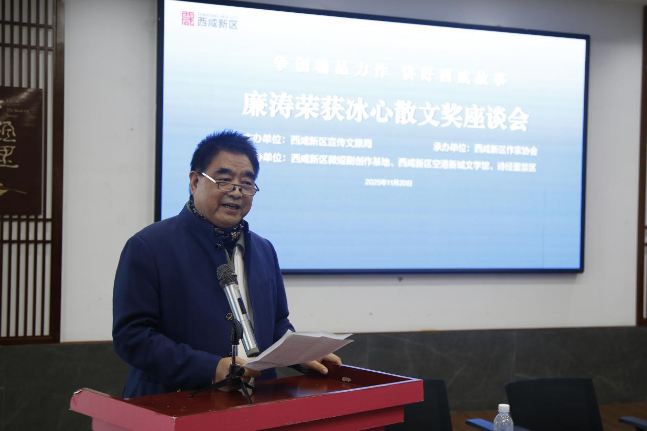 三秦都市报-三秦网讯11月20日,由西咸新区宣传文旅局主办、西咸新区作家协会承办的“争创精品力作、讲好西咸故事——廉涛荣获冰心散文奖座谈会”在诗经里召开。陕西省作协主席,茅盾文学奖获得者贾平凹向座谈会致贺辞,西咸新区宣传文旅局副局长杨彬彬,中国散文学会副会长、陕西省散文学会会长陈长吟,陕西省作协副主席、西咸新区作协主席王海,有关专家学者作家等40余人出席座谈会。座谈会由西咸新区作协副主席、文学院院长周伟团主持。