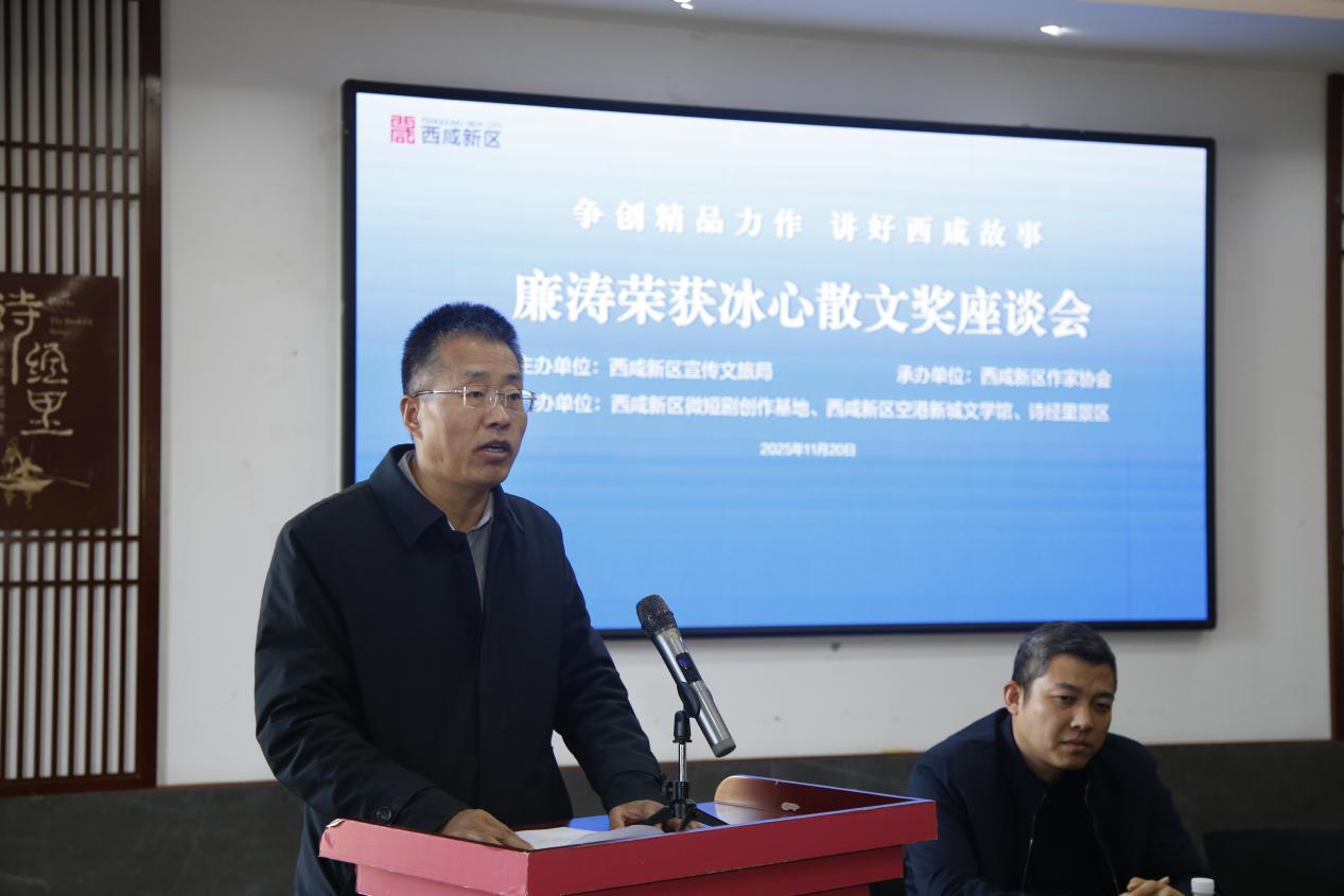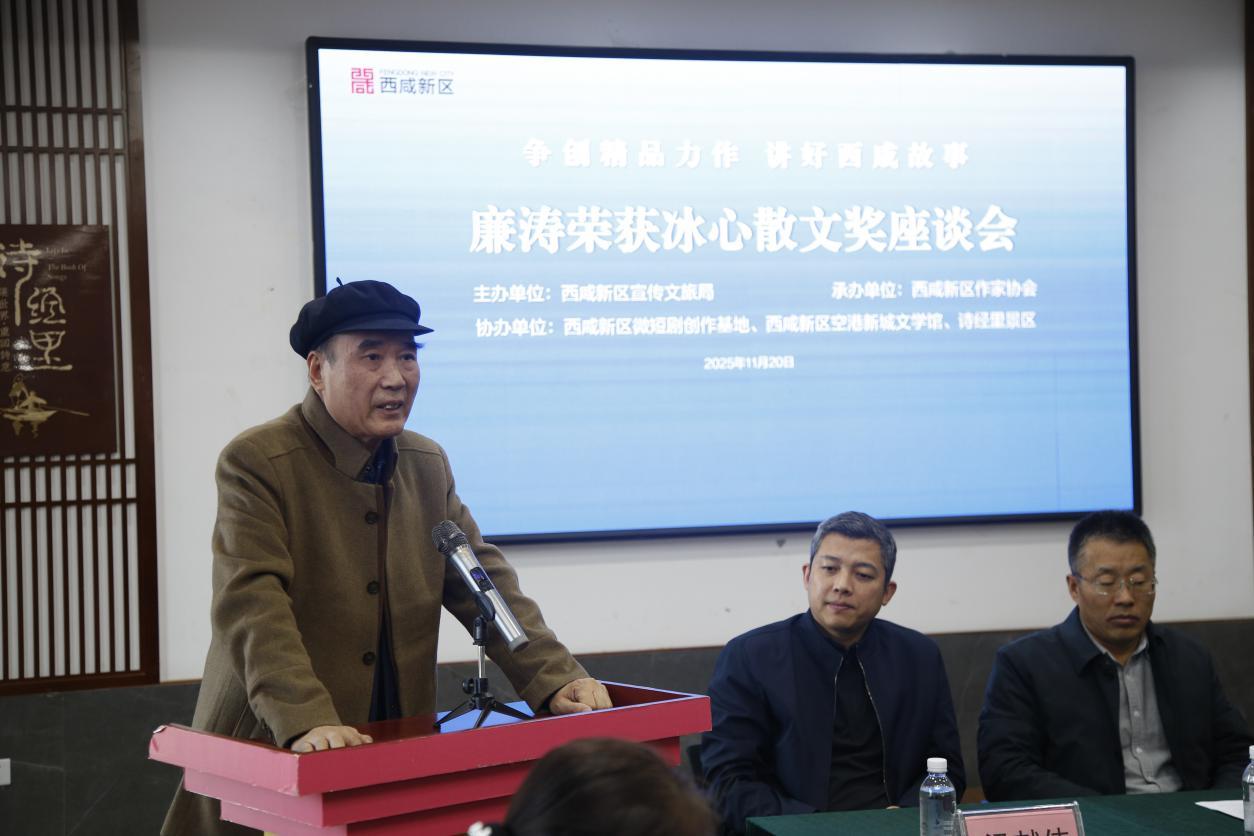 王海在讲话时说:“廉涛荣获冰心散文奖,这是西咸文学的重要收获。希望西咸新区的作家们扎根本土,争创精品力作,讲好西咸故事,让西咸文学走得更远,为‘文学陕军’争光添彩。”