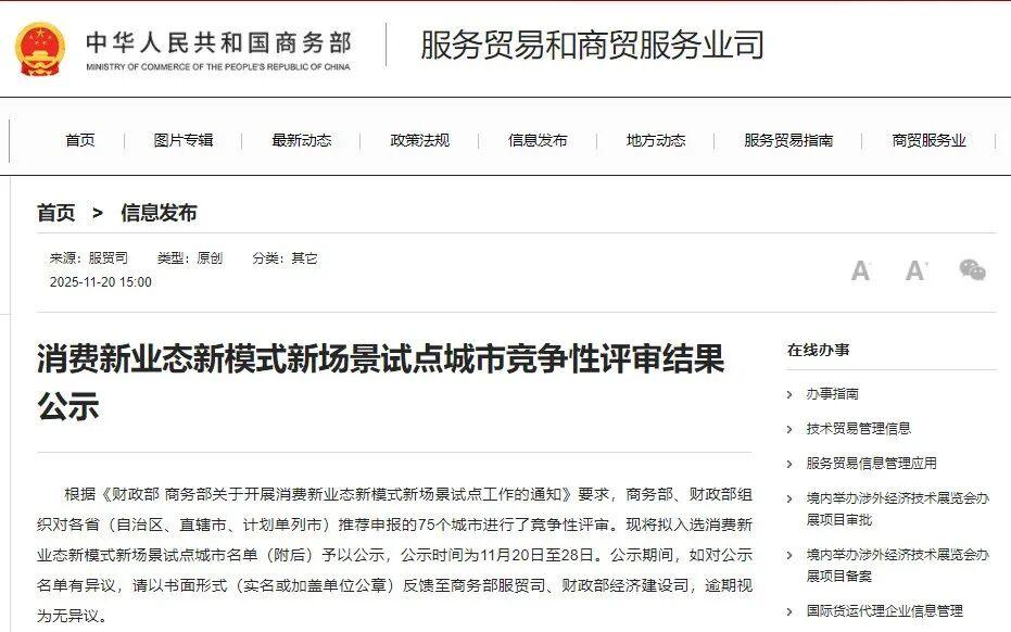 11月20日,商务部官网接连公示两项国家级试点名单——“消费新业态新模式新场景试点城市”与“国际化消费环境建设试点城市”,西安在激烈竞争中双双突围,成为西北地区唯一入选双项试点的城市。 这已是西安今年在消费领域拿下的第三项国家级“认证”,早在6月,西安便已跻身首批“全国零售业创新提升试点城市”行列。 频频在国家消费政策试点中脱颖而出,西安凭借的不仅是深厚的历史文化底蕴,更是在消费领域的创新实力和巨大潜力。 “西安不仅是历史文化名城,更是消费活力之城。”一位观察人士指出,“从大唐不夜城的沉浸式体验到老城根Gpark的年轻潮流文化,西安已经形成了多层次、多元化的消费场景。” 图源:曲江新区 西北唯一双入选 今年9月,商务部与财政部联合发布《关于开展消费新业态新模式新场景试点工作的通知》和《关于开展国际化消费环境建设工作的通知》两份文件,旨在通过差异化路径激发消费潜力。 如今试点名单“靴子落地”,西安双双入选,无疑印证了其在全国消费格局中的特殊地位。 两项试点虽各有侧重,却形成互补的政策合力。其中,消费新业态新模式新场景试点主要着眼于健全首发经济服务体系,创新多元化服务消费场景,推动更多外贸优品进入国内消费市场,培育消费新增长点。 国际化消费环境建设试点则更凸显“国际属性”,以强化“购在中国”品牌为核心,创新国际化、多元化消费场景,提升国际化服务水平,打造更加便捷、舒适的消费环境,吸引境外旅客入境消费。 两项试点相辅相成,共同构成了促进消费升级、扩大国内需求、激活入境消费的“政策组合拳”。 某种程度上,消费试点城市的竞争,实则是一场关于未来消费话语权的争夺。 从政策导向来看,消费新业态新模式新场景试点主要向超大特大城市倾斜。这意味着,入选城市不仅能在政策创新上先行先试,还将获得相应的财政支持。 国际化消费环境建设试点“含金量”更甚。全国仅15个左右名额,且重点向国际消费中心城市倾斜。目前国务院确定的国际消费中心城市仅有上海、北京、广州、天津、重庆五地,此次试点可视为国际消费中心城市的“预备队”。 “这些试点城市代表着中国消费的未来形态。”上述观察人士表示,“西安的入选,既体现了其在西部地区的消费引领作用,也反映出国家在消费布局上对‘一带一路’核心节点城市的战略重视。” 叠加今年6月获批的“全国零售业创新提升试点”,西安已在国家消费战略版图中承担起三重使命。多重认可背后,是顶层对扩大内需实践提供可参考的“西安样本”的期待。 西安的消费底气 西安跻身“双试点”城市之列,印证着这座千年商埠在消费赛道上的厚积薄发。 今年1-9月,西安社会消费品零售总额4151.7亿元,同比增长5.2%,增速高于全国(4.5%)0.7个百分点,在全国15个副省级城市中排名第四。1-10月全市限额以上消费品零售额同比增长6.7%,较1-9月提高1.2个百分点。 支撑这一消费势能的,是国家中心城市的能级支撑与人口结构红利的双重赋能。西安常住人口超1300万、高校资源高度富集,持续为城市商业注入高频而年轻的活力。 消费需求的攀升直接带动商业载体扩容。西安的商业综合体从2020年的69座跃升至2024年的130余座,年均吸引客流近9亿人次,销售额突破500亿元。 空间格局上,西安正逐步构建“主副双核、轴向组团、六片多心支撑”的全域商业体系。其中,钟楼·大南门与小寨·大雁塔两大国际级消费集聚区,已成为引领城市潮流风向的“双引擎”。 更具辨识度的,是西安在商旅文融合赛道上的一系列创新实践。 大唐不夜城以盛唐文化为脉络,将商业业态与沉浸式演艺有机结合;“长安十二时辰”主题街区依托爆款IP,构建出剧情化的唐风市井体验地;西影电影园区依托老厂区工业遗存,塑造出独特的影视文化消费场域。 新业态探索方面,即时零售、首发经济、“一刻钟便民生活圈”精准覆盖等创新举措,展现出这座城市在营造国际化消费环境上的前瞻视野。 国际化消费环境的构建,既需硬件升级更要软实力提升。 截至2025年10月,西安离境退税商店已达164家,较去年激增331%。与之配套的涉外服务软环境也在持续优化,近百个游客服务中心覆盖全城,重点商圈与景区全面推广多语种标识导览,多语种支付指南精准破解境外游客消费障碍。至2024年,大中型商户境外银行卡受理覆盖率已提升至90%,为国际游客构建起便捷友好的消费闭环。 图源:曲江新区 从制度破壁到场景再造,从支付便利到服务升级,西安正以系统化、国际化的视野推进消费生态的整体构建。这也为此次入选国家级试点,奠定了扎实的底气。 据悉,两项试点的政策实施期均为两年。随着政策红利逐步释放,西安有望在消费能级、市场活力与环境品质上实现新一轮跃升,为城市经济注入更充沛的动能。