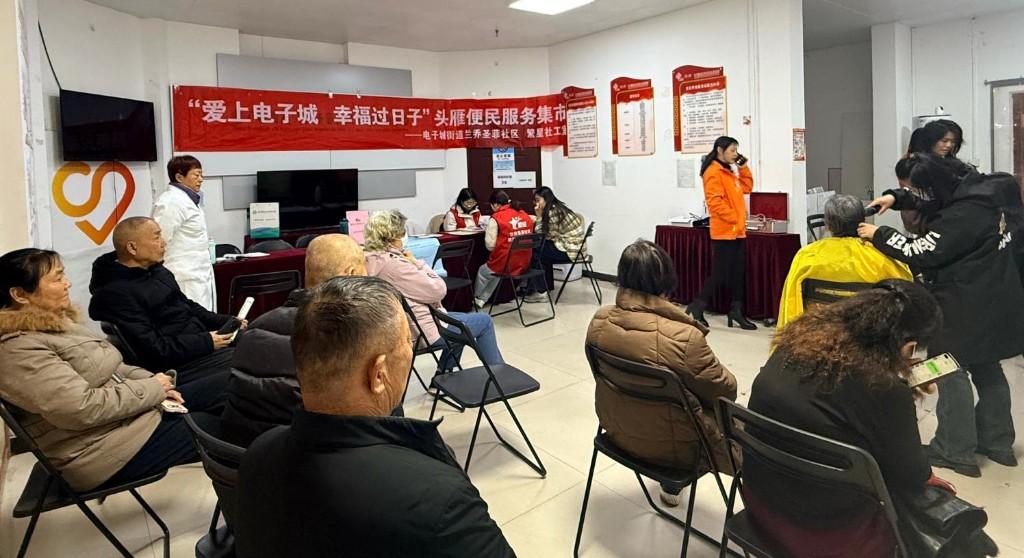 最聚人气的莫过于爱心义剪区。经验丰富的理发师志愿者手中剪刀翻飞,一丝不苟地为每一位前来理发的居民服务。伴随着细碎的“咔嚓”声,居民们的发型变得利落整洁,脸上也露出了满意的笑容。