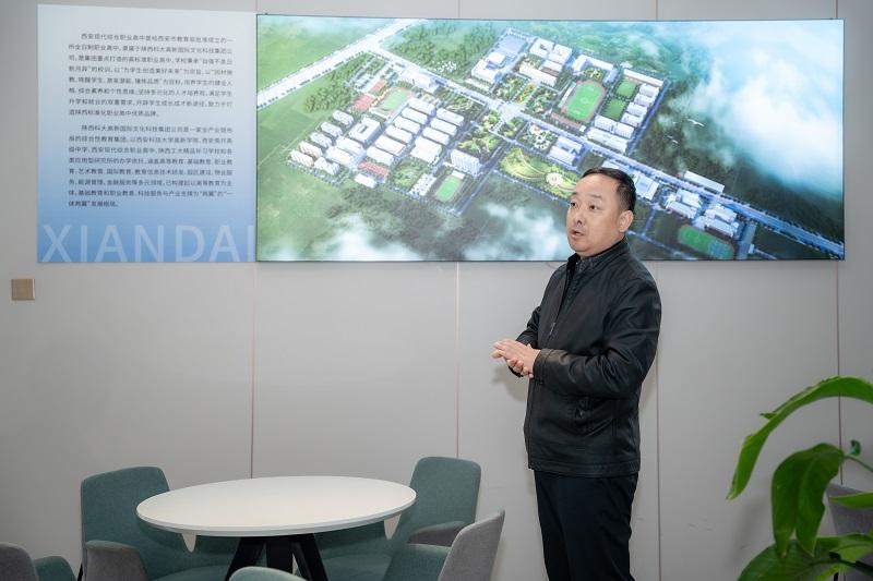 交流座谈会由副院长王国良主持。会上,院长助理胡秋实首先详尽介绍了科大教育集团的基本情况,从办学理念、学科建设到产教融合模式等方面作了全面分享。学院董事长孙龙杰同志对安康学院钟书记领导一行的到来表示热烈欢迎,他指出,人工智能时代已然来临,学校如何创新与发展成为亟待解决的课题;学院近年来在国际化与智慧化领域取得丰硕成果,双方可借此契机展开深层次合作。钟生海书记对高新学院在学科专业建设、二级学院规划布局及绿色生态等方面取得的成果表示高度赞赏。双方就人才培养体系、教学资源共享及校企协同育人等议题展开热烈讨论,坦诚交换意见,共同谋划合作前景。
