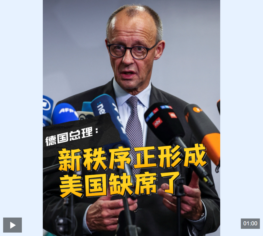 11月23日,德国总理默茨在南非举行的二十国集团(G20)领导人第二十次峰会结束后表示,峰会期间可以看到,世界正在经历一场重新排序,新的联系正在形成,而缺席这次峰会的美国在其中扮演的角色相当有限。默茨说,这次峰会讨论了很多内容,而美国只是被顺带提及——他认为,美国缺席这次会议并不是一个明智的决定。