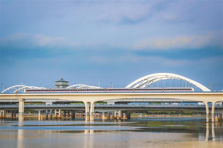 图为西安地铁3号线列车快速驶过广运大桥(2024年5月14日摄,资料照片)。 受访单位供图