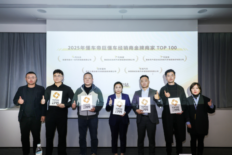 2025懂车帝巨懂车经销商金牌商家TOP100年度榜单也在伙伴大会活动现场正式揭晓,西安地区获奖商家代表上台领奖。此次评选秉承公平、公正、公开的原则,基于平台大数据,综合考量2025年1月至10月间,经销商在懂车帝和抖音双平台的经营规模、获客能力、转化效率、客户满意度、营销投入及合作深度等多维度表现。