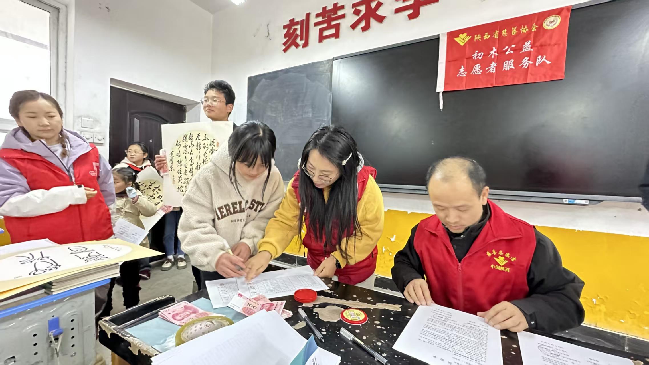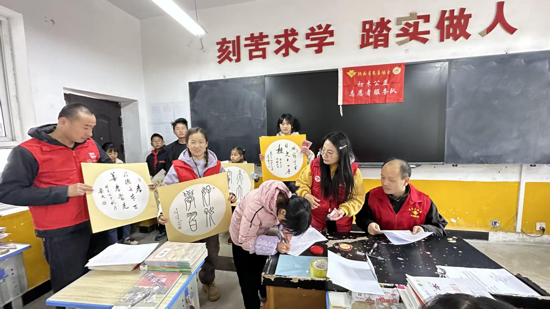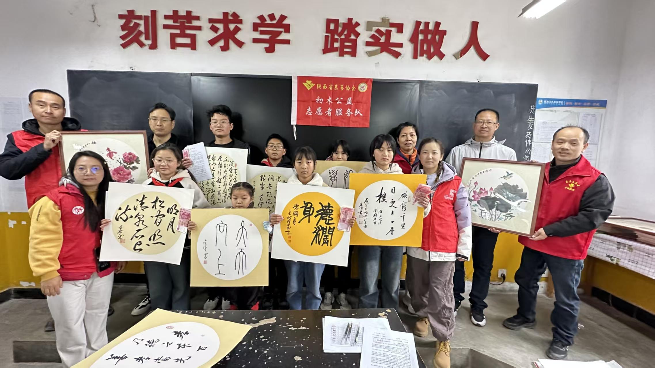 三秦都市报-三秦网讯(记者 代泽均)11月24日早上,陕西省慈善协会初木公益志愿者服务队副秘书长汪选华、西咸新区尊老爱幼助残服务队副秘书长刘庭,带领志愿者董晓亮、郭颖华、张倩、姜明华,马霞,携带着志愿者捐赠的资助金、水彩笔和三桥书画协会捐赠的精美书画作品,驾车前往商洛市商州区砚池河九年制学校。
