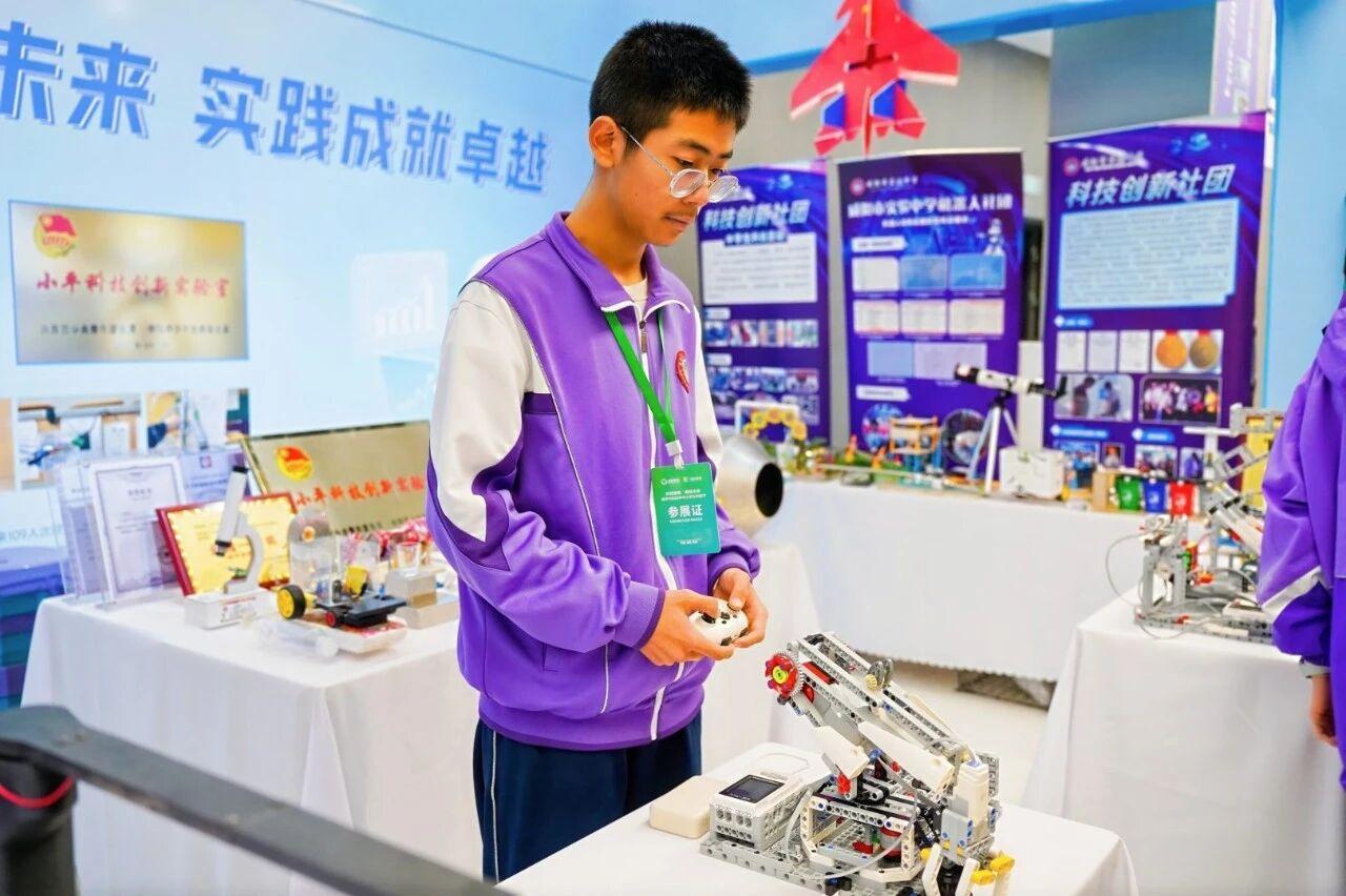 活动现场,来自全市13个县市区、高新区以及市实验中学等16家单位集中展示了在人工智能、机器人、航模等领域的丰硕成果。学生战队带来的无人机编队飞行、机器人互动表演、航模展示等环节精彩纷呈,赢得现场观众阵阵掌声。
