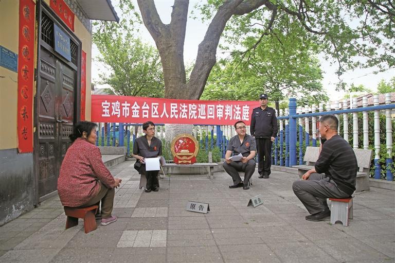 宝鸡市金台区法院法官把庭审现场搬到了村委会院子(资料照片)。 受访者供图