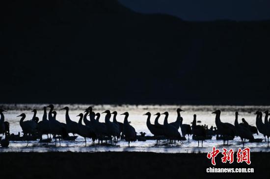11月26日,位于西藏自治区拉萨市林周县的黑颈鹤自然保护区内,大量越冬的黑颈鹤在卡孜水库、农田、湿地里觅食、嬉戏。林周县位于拉萨河上游及澎波河流域,是黑颈鹤的主要越冬地之一。
