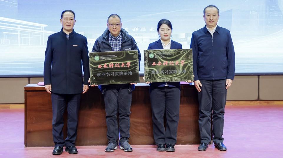 活动现场,西安科技大学学工部部长李建明与中建新疆建工土木工程有限公司、中国建筑材料工业建设西安工程有限公司签署校企合作协议,相勇主任与曹明副校长共同为两家企业授牌“就业实习实践基地”。活动同步举办“数智化时代土木人才的胜任力重塑研讨会”,围绕行业趋势、人才能力结构等议题展开交流,推动产学研用深度融合。