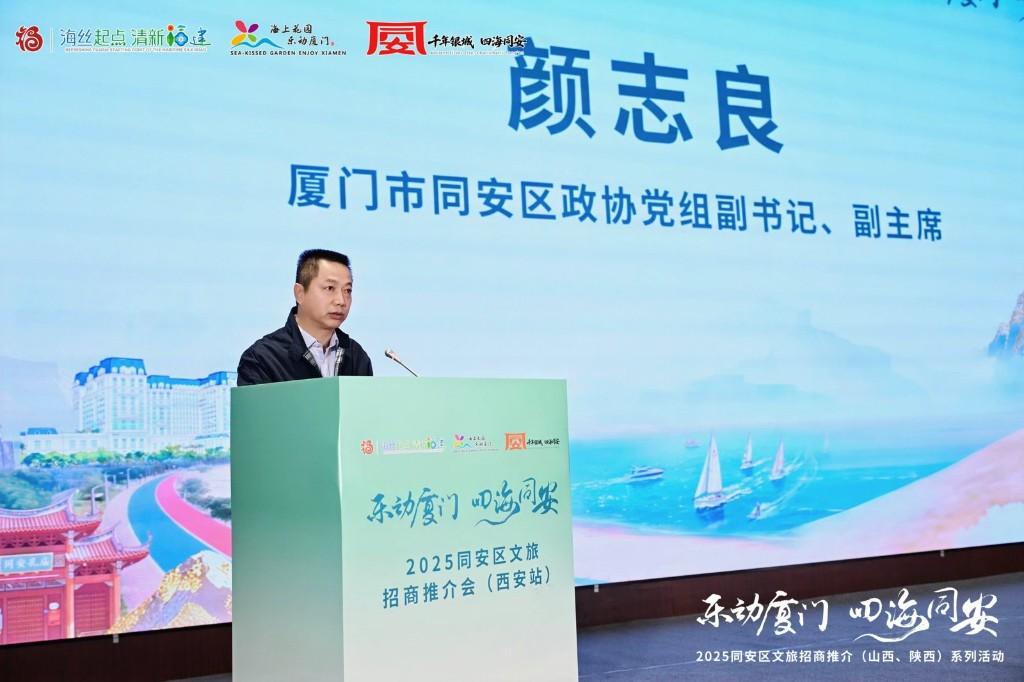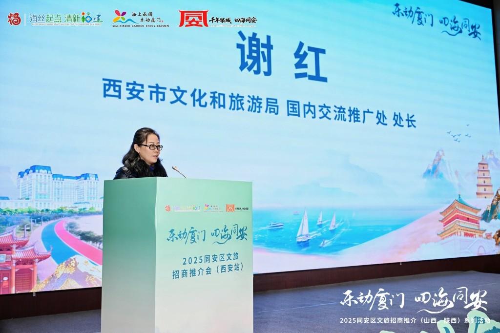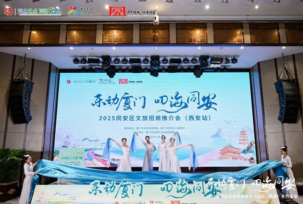 三秦都市报-三秦网讯(记者 夏明勤)11月28日,2025“乐动厦门•四海同安”文旅招商推介系列活动最后一站来到了历史悠久的十三朝古都西安。本次活动汇聚两地文旅主管部门、重点企业、旅行商及媒体代表近百人,为推动东西部文旅产业深度合作,共谋发展新机遇注入新动能!
