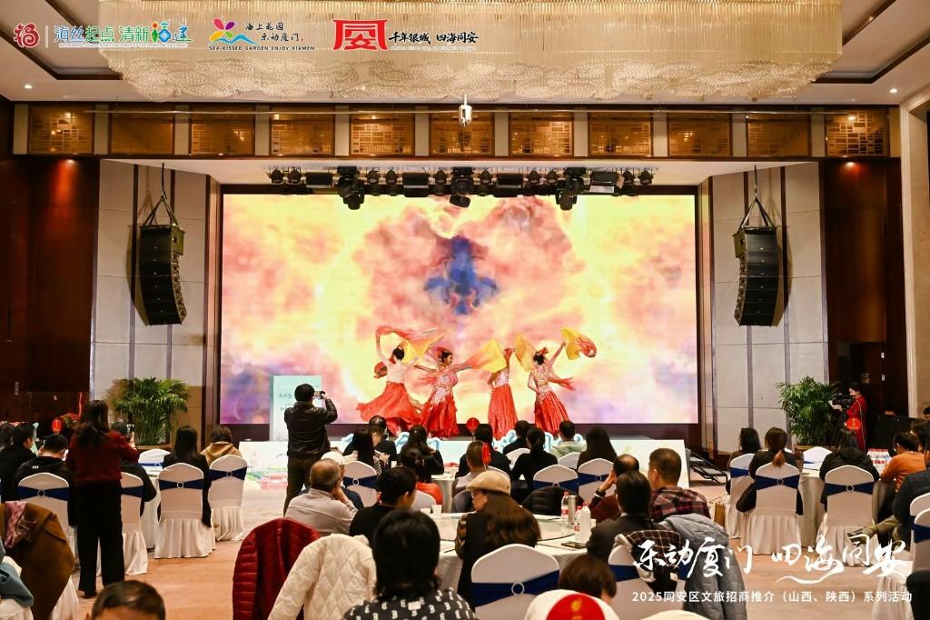 推介会上,同安区领导表示,同安是厦门的“后花园”,是一座有着1700多年历史的文明古城,这里“山、海、城、文”完美融合,孕育了独特的闽南风情与开放包容的城市品格。希望借此机会,与西安这座承载着中华文明瑰宝的世界级旅游城市结下深厚情谊,热情期盼西安的市民朋友们亲临同安,漫步黄金海岸,探访红砖古厝,亲身感受“四海同安”的独特魅力。