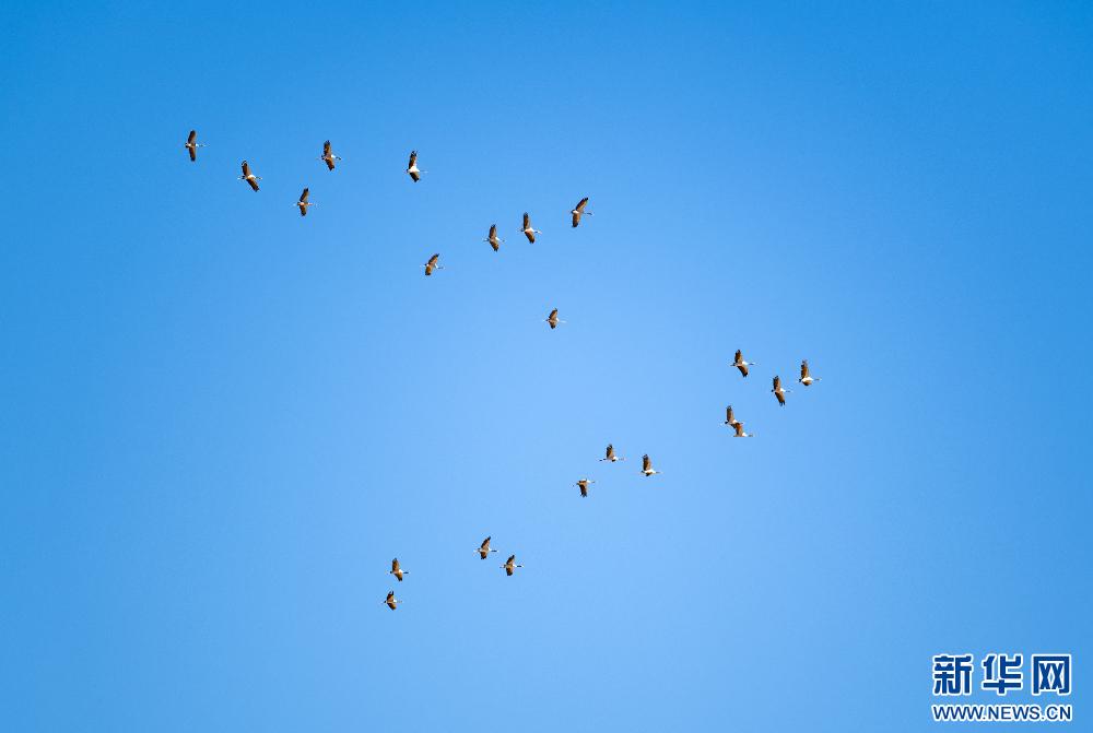 这是11月26日在西藏拉萨市林周县境内拍摄的候鸟。新华网 旦增努布 摄