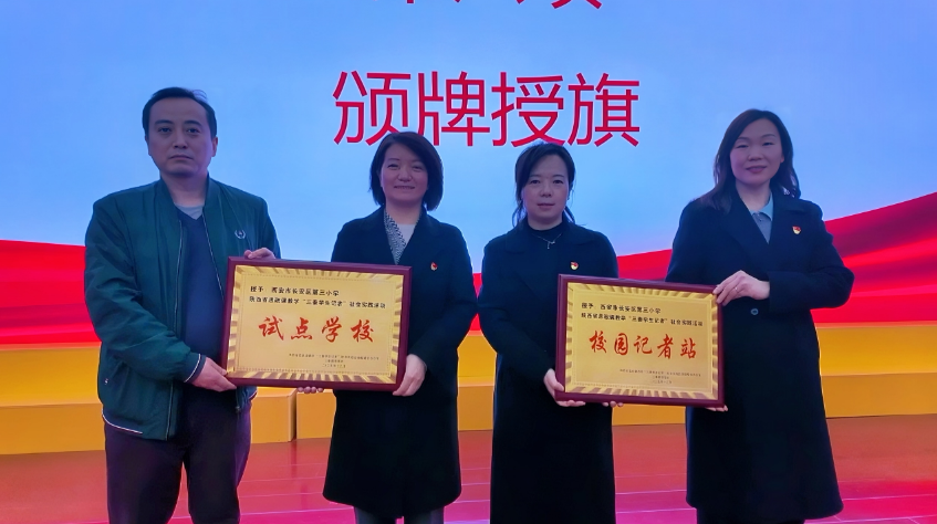 三秦都市报-三秦网讯(记者 杨琪 雒骋宇)12月1日下午,西安市长安区第三小学“三秦学生记者团”成立仪式在该校报告厅举行。仪式现场,学校获颁陕西省思政课教学“三秦学生记者”社会实践活动试点学校及“校园学生记者站”牌匾,并正式接过了“三秦学生记者团”团旗。