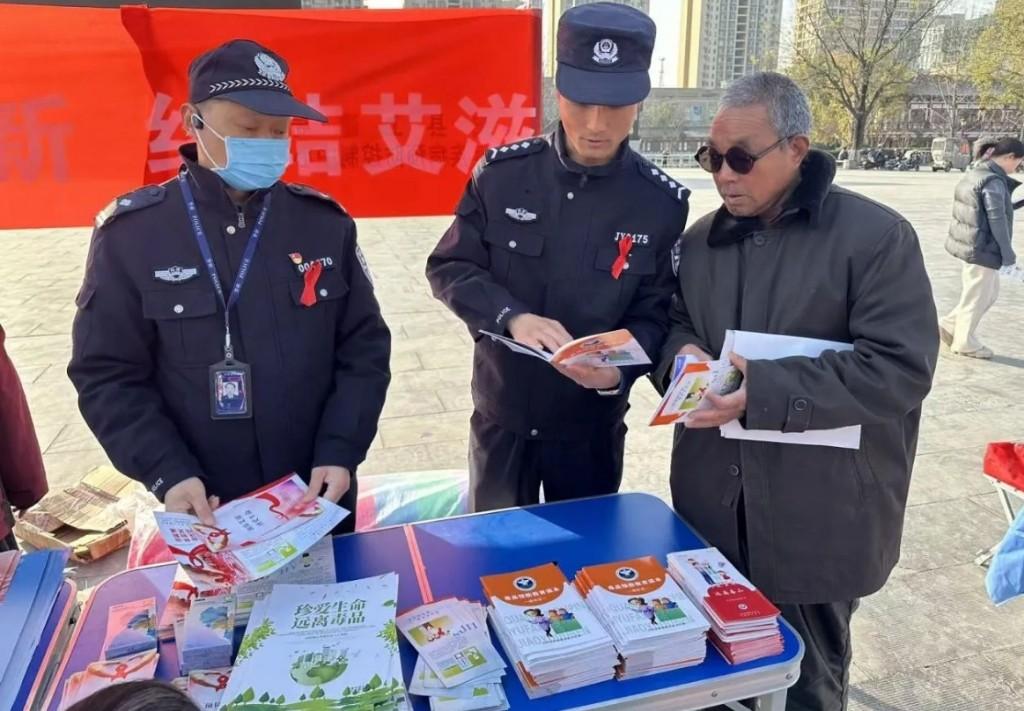 三秦都市报-三秦网讯(郭伟)在第38个“世界艾滋病日”来临之际,为深入推进禁毒人民战争,强化毒品与艾滋病关联危害的科普传播,切实提升群众识毒防毒、知艾防艾意识,12月1日,咸阳市泾阳县公安局禁毒大队民警联合县疾控中心,在泾干湖广场开展以“社会共治,守正创新,终结艾滋”为主题的禁毒防艾宣传活动。