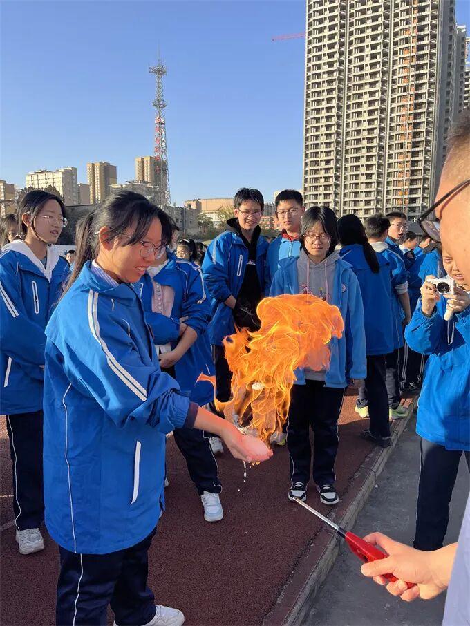 生化展区的实验演示充满视觉冲击。“星火熔金,焰映科技”的铝热反应中,耀眼白光与熔融铁水直观呈现氧化还原反应的能量释放;“掌间烈焰,科学魔法”的手上生火实验,在安全保障下让学生亲历化学奇迹。趣味互动区里,“元素周期表套圈”和“发酵食品知识抢答”活动,将专业知识转化为欢乐游戏,让学生们在竞技中巩固学识,收获成长。
