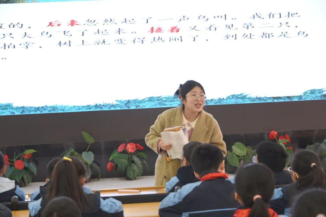 汪雨坤老师化身“旅行博主”,通过品读批注、对比朗读带学生领略群鸟欢腾的动态美,解析点面结合写法,以小练笔实现方法迁移,让学生在赏景中悟情、在实践中提升。