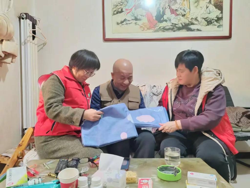 在残疾人张女士家中,工作人员不仅送上棉被,还细致检查了供暖设备和电路安全。“张阿姨,您腿脚不方便,有任何需要随时给社区打电话,我们随叫随到!”一边帮她铺好新被子,工作人员一边耐心叮嘱。张阿姨躺在床上,紧紧握住对方的手,动情地说:“社区总是记着我,夏天送清凉,冬天送温暖,这份关爱让我心里热乎乎的。”