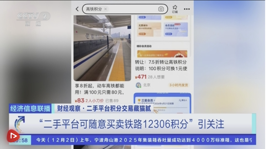 近日,有网友发帖表示,有二手电商平台低价售卖铁路12306会员积分以兑换车票,引发热议。记者致电铁路12306客服,工作人员明确告知里程积分不能转让,但可以通过添加受让人的形式供他人使用。