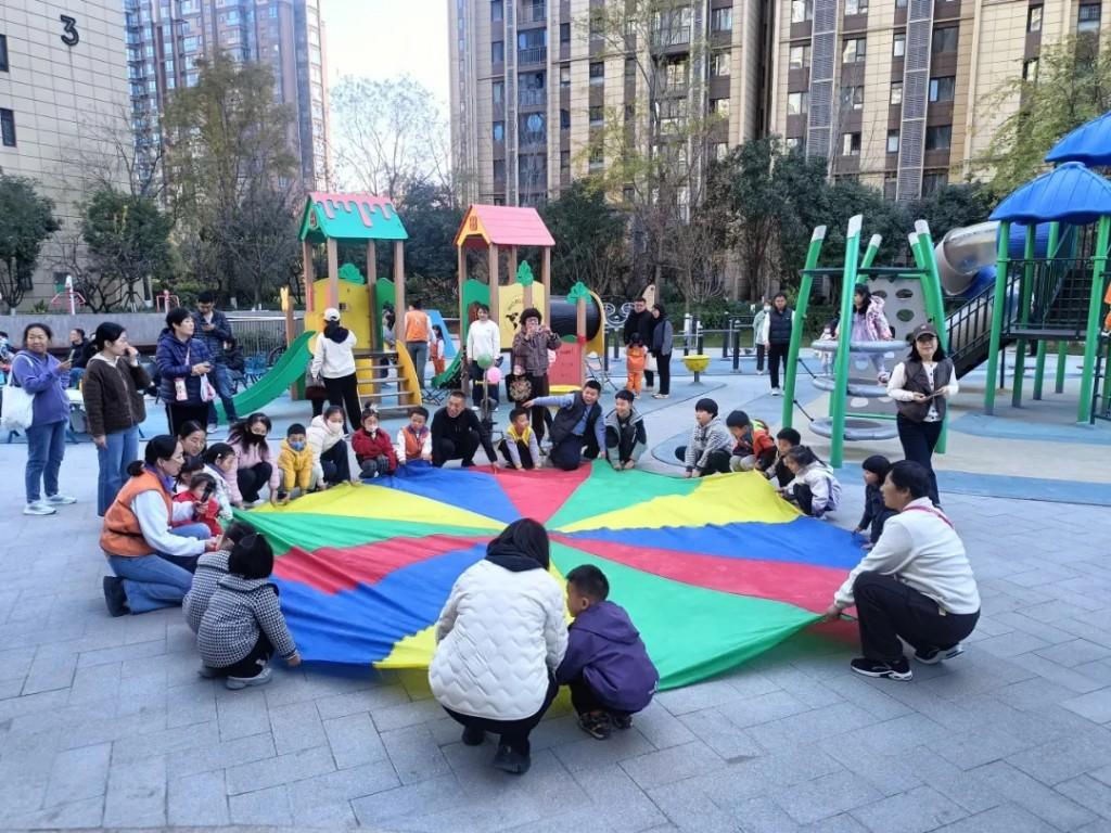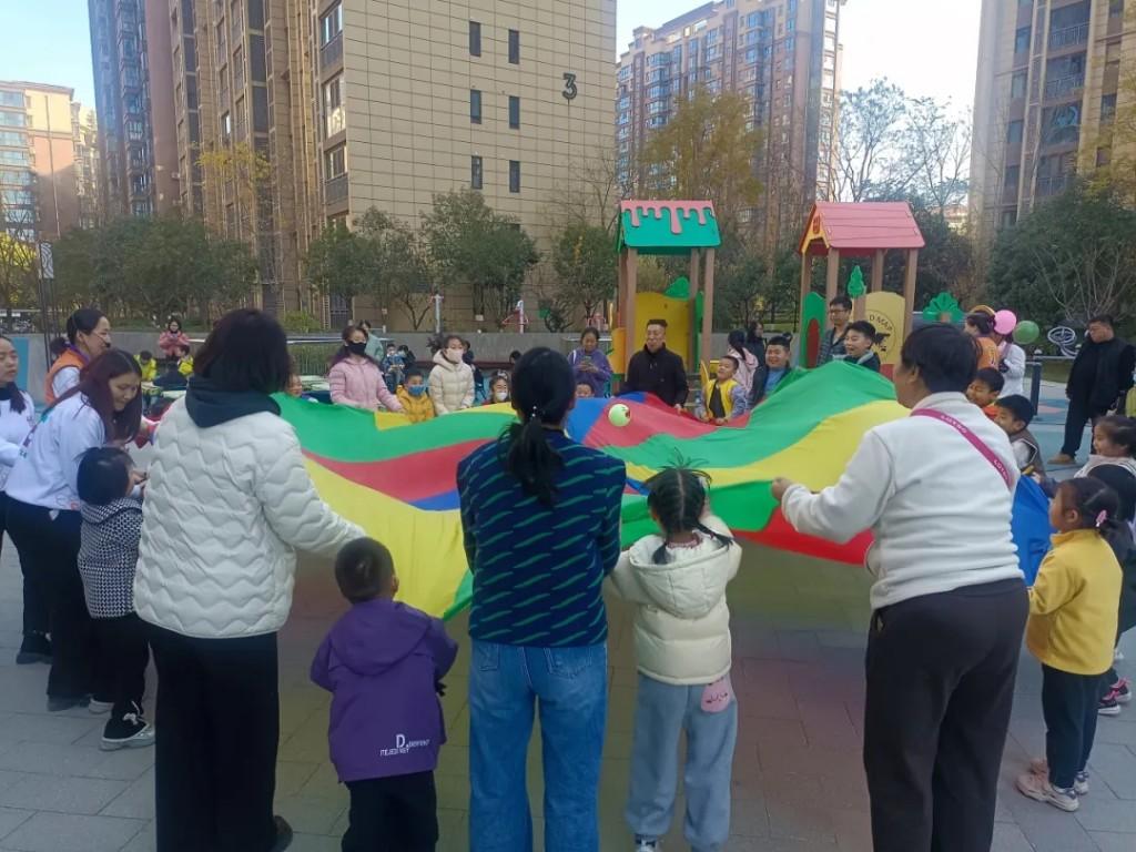 活动最后,全体家庭共同参与“彩虹伞颠球”集体游戏。随着彩虹伞起伏,彩球欢快跳跃,欢笑声与加油声此起彼伏,将现场气氛推向高潮。