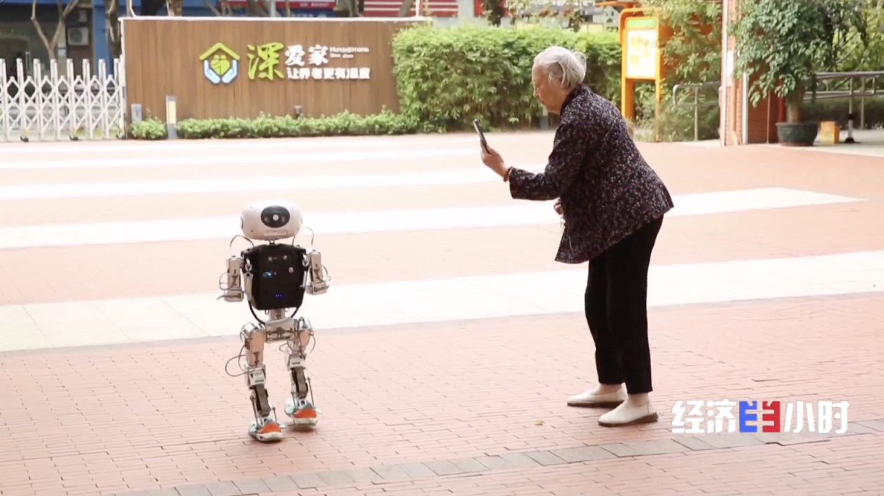 在深圳的一家养老护理院里,有100多台大大小小的养老机器人。老人们聊天、唱歌、跳舞、下棋,都有了机器人“搭子”。