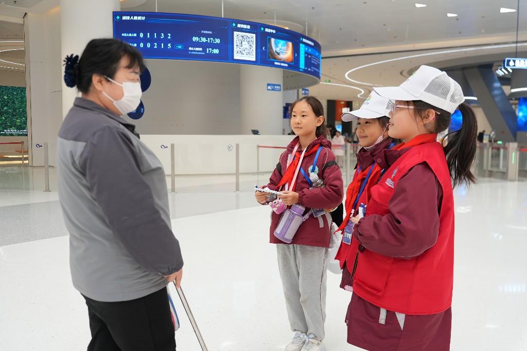 午后,小记者们迎来了采访实战环节。四年级11班李沐泽在展厅里来回奔走,成功完成了三次采访。他开心地说:“采访很有趣,遇到不同的人,感受也完全不同。”许多同学从羞涩开口到从容交流,在实践中锻炼着沟通与观察能力。