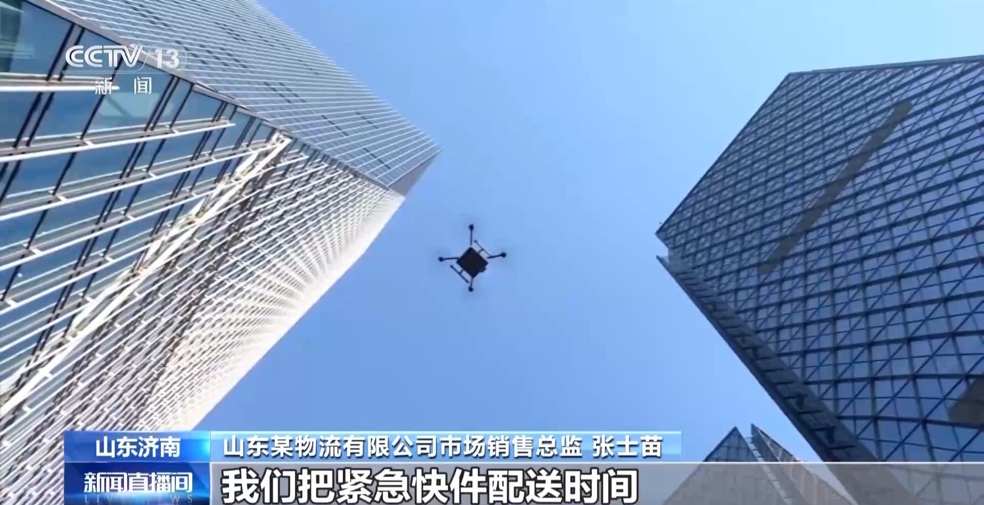 山东某物流有限公司市场销售总监 张士苗:利用无人机,我们把紧急快件配送时间从半天缩短至30分钟,实现分钟级送达。