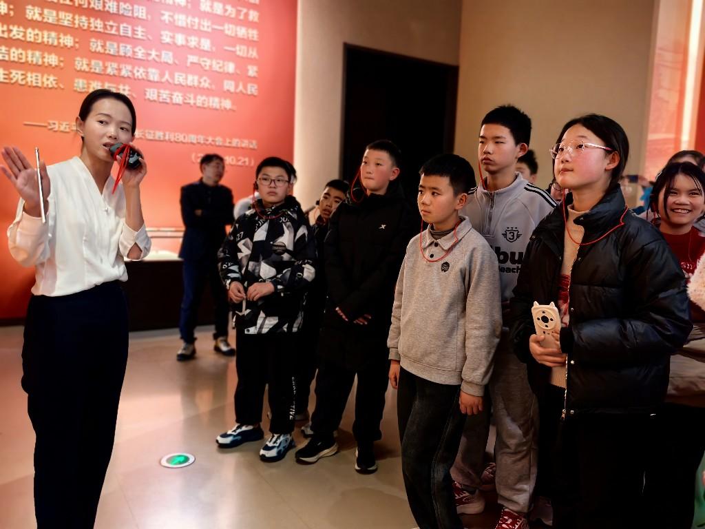 活动“寻根篇”中,学生们对照课本图片,走进延安革命纪念馆。馆内陈列大量珍贵革命文物和历史照片,从简陋的武器装备到泛黄的文件手稿,每一件展品都诉说着烽火连天的岁月。学生们驻足凝视,仔细聆听讲解员介绍,仿佛穿越回激情燃烧的年代,深刻感受到革命先辈的坚定信仰与无私奉献。