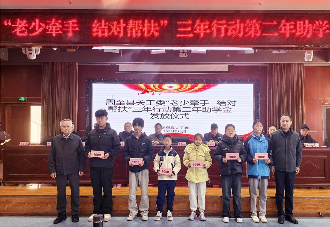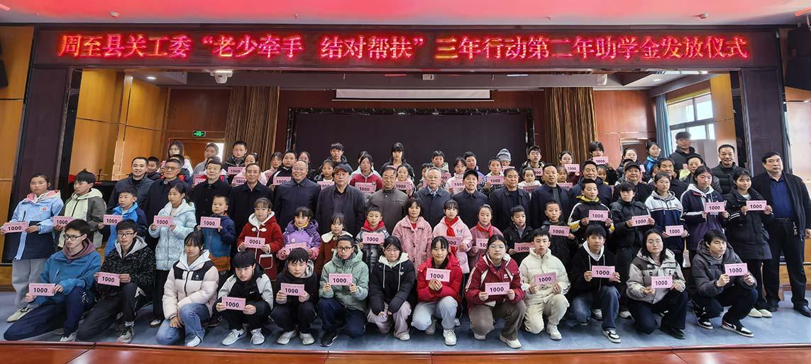 三秦都市报-三秦网讯(记者 马昭)12月6日,周至县关工委举行“老少牵手 结对帮扶”三年行动第二年助学金发放仪式。西安市关工委常务副主任曾松林,周至县关工委主任张武平及相关负责人,爱心企业代表,各镇街关工委常务副主任,以及受助学生和家长共200余人参与活动。
