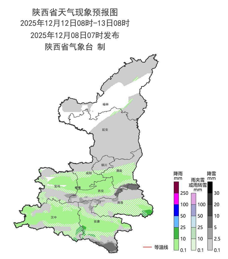 三秦都市报-三秦网讯(记者 陶颖)12月9日,记者从陕西省气象局召开的新闻发布会上获悉,受较强冷空气影响,11日至13日我省有一次大范围雨雪、强降温、大风天气过程,雨雪从11日傍晚开始到12日夜间结束。