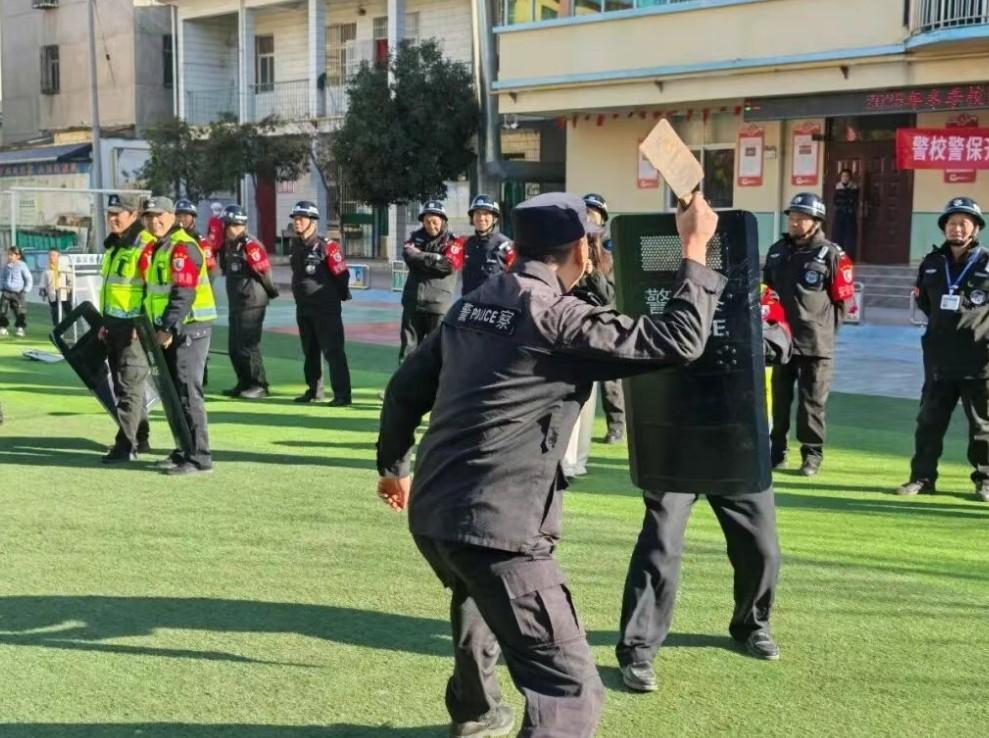 三秦都市报-三秦网讯(贾于卜)为深入推进“金盾护苗”专项工作,筑牢校园安全防线,近日,咸阳市三原县公安局巡特警大队走进中山街小学,联合陕西振原军道保安服务有限公司负责城区校园安保的全体安保人员,开展了一场实战化应急处置演练,以专业力量为师生安全保驾护航。