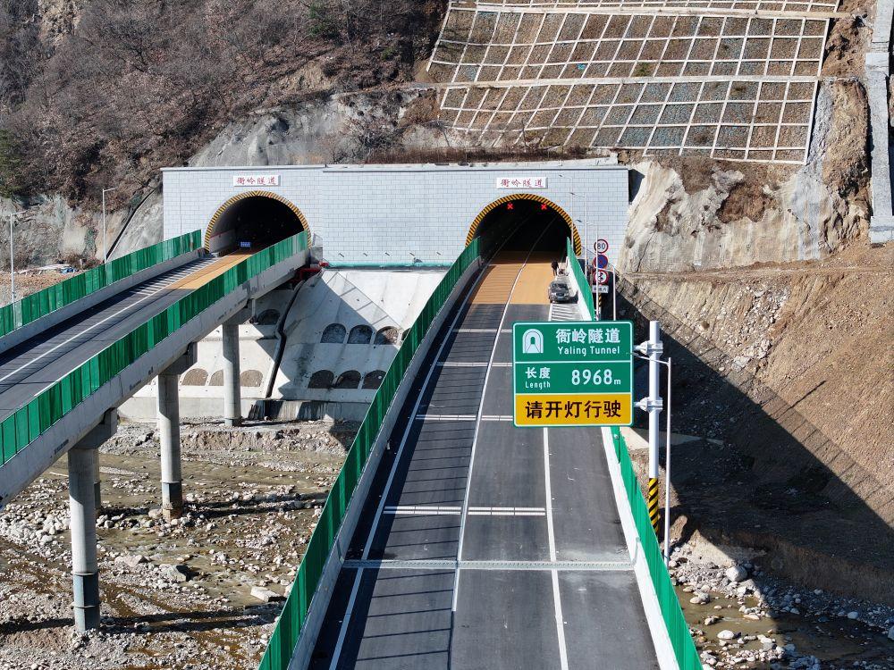 位于陕西太白县桃川镇境内的眉太高速公路(12月10日摄,无人机照片)。