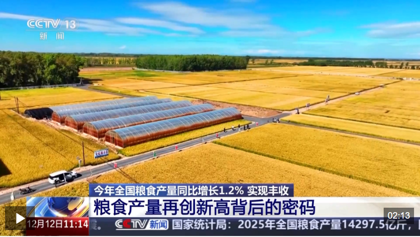 农业农村部种植业管理司副司长 吕修涛:2025年,我国粮食生产实现高位增产、再创新高。从季节看,主要增在秋粮;从区域看,主要增在东北、西北;从作物看,主要增在玉米。
