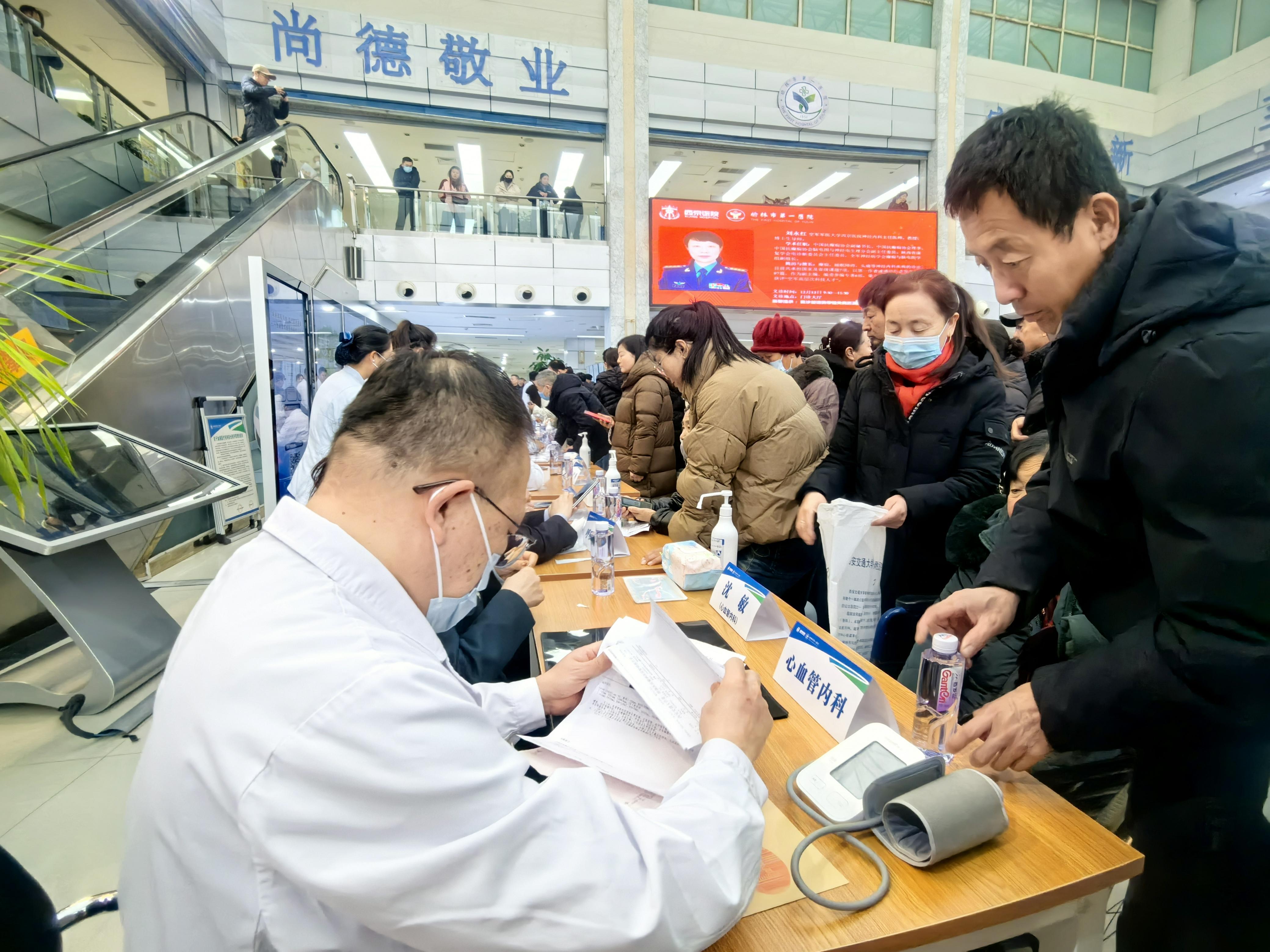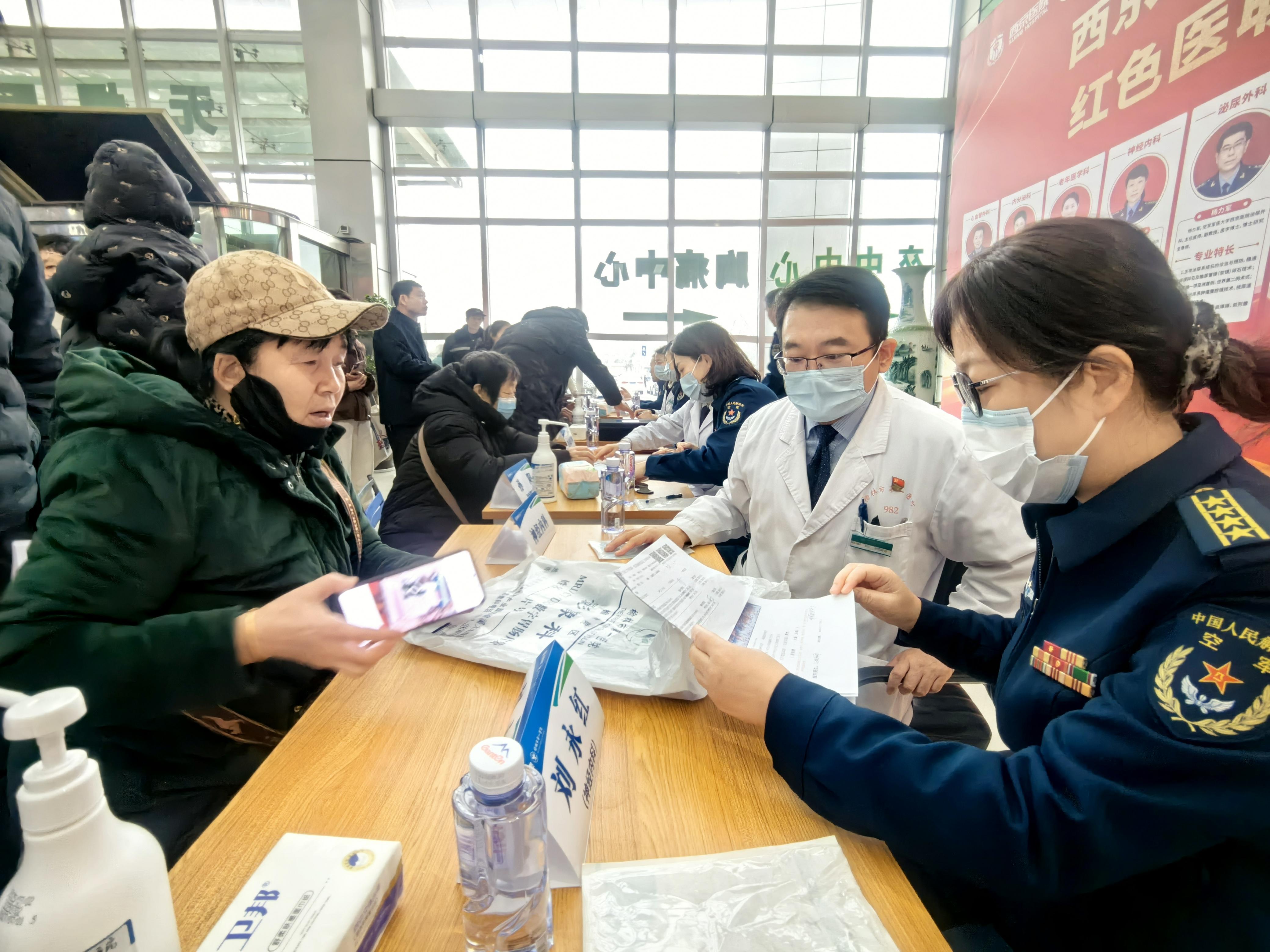 仪式结束后,西京医院专家团队按学科分组开展义诊活动。门诊大厅内人头攒动,专家们不辞辛劳,逐一倾听病情、查看病历,精准给出诊断建议,以专业严谨的态度和精湛医术赢得就诊群众一致好评。