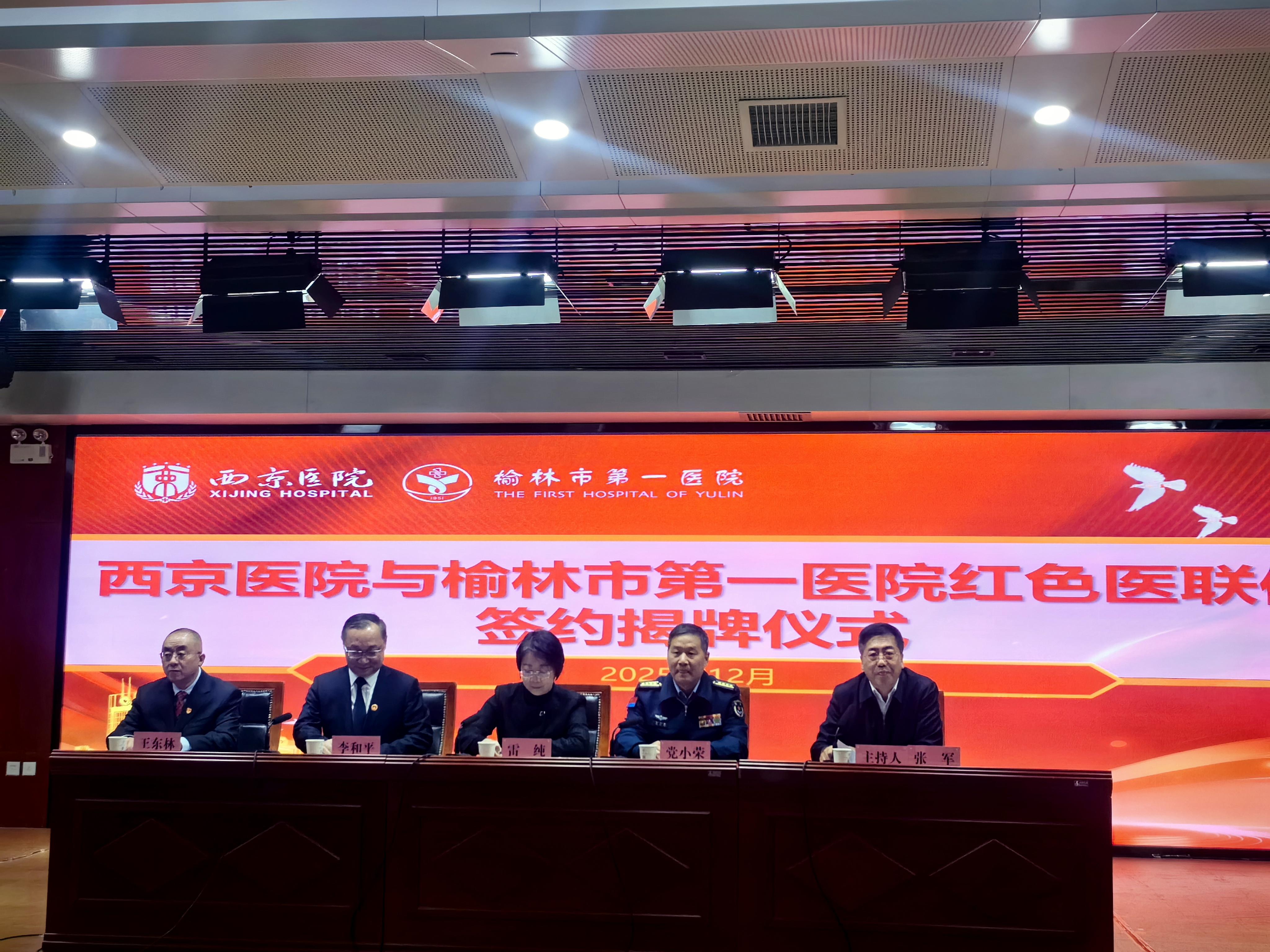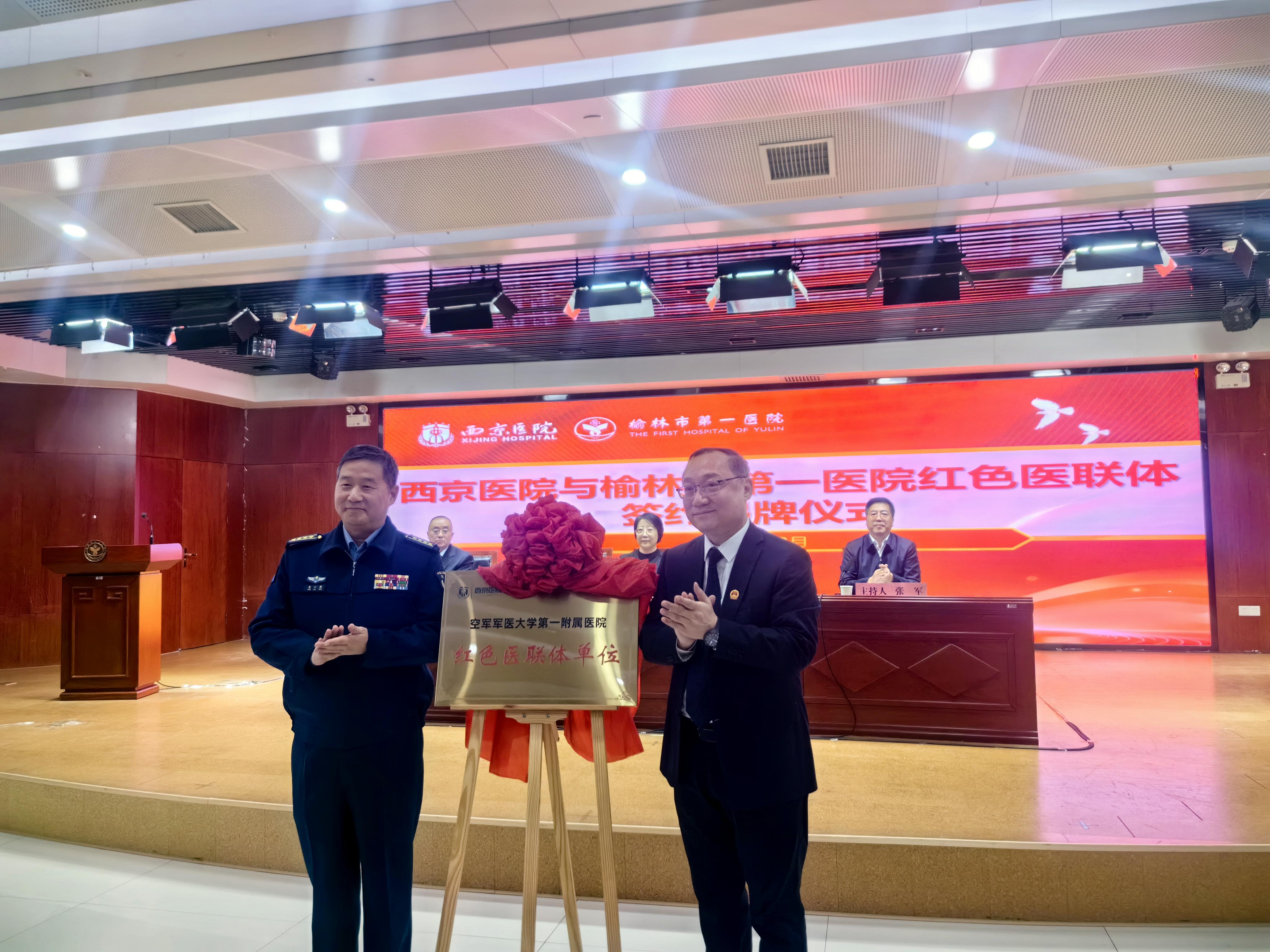 榆林市政府党组成员雷纯,西京医院院长党小荣,榆林市政协副主席、市第一医院院长李和平,市卫健委党组成员、市第一医院党委书记王东林,西京医院专家团队及市第一医院领导班子、中层干部出席仪式。榆林市卫健委党组书记、主任张军主持仪式,党小荣与李和平共同签署合作协议并为红色医联体揭牌。