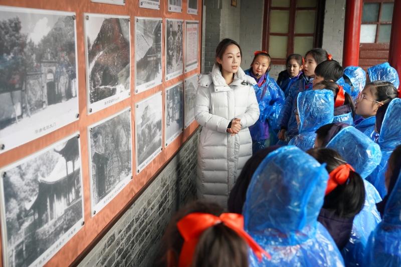 华清小学四年级学生张歆桐站在五间厅前,指着墙上的历史图片说:“作为一名红领巾讲解员,我要把家乡的历史文化讲给更多的人听。长大以后,我要报效祖国,为祖国出一份力。”