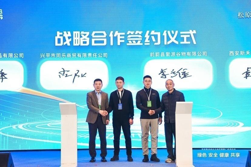 活动现场松原市粮食和物资储备局与西安市发展和改革委员会及松原市粮食协会与西安市松原商会分别达成战略合作,多家吉林粮食企业与陕西经销商现场签约,销售大米2650吨,鲜食玉米1200万穗,签约涵盖了大米、鲜食玉米等多个品类及渠道合作,这标志着松原粮油规模化、系统性进入西安市场迈出了关键一步,吉林粮食品牌在陕西市场取得了显著成效。