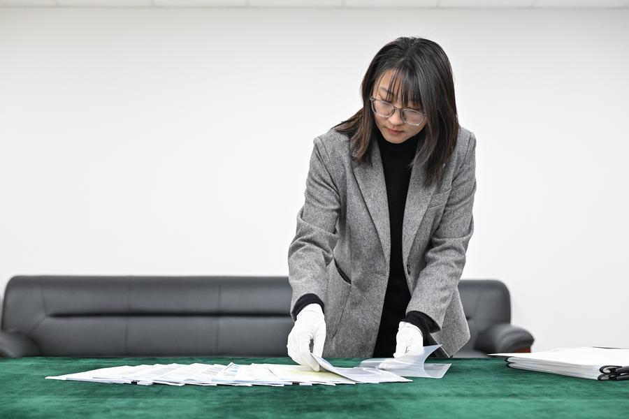This undated photo shows a staff member from China's Central Archives arranging some Russian-provided archive copies related to the infamous Unit 731, a Japanese germ-warfare unit that operated during World War II. China has received a batch of Russian-provided evidence related to the infamous Unit 731, China's Central Archives said on Saturday. (Xinhua/Li Xin)