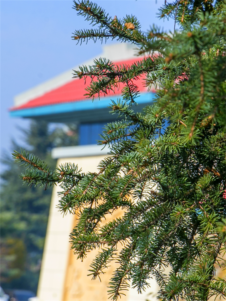 文/陈毓 这个下午,久雨放晴,云天烂漫,我从思源金石东路向田径场走,去看台上观落日。时间宽裕,我缓步慢行,完全沉浸在初秋带着薄荷味凉意的清新空气里,忽然,一束光照在我脸上,也照亮左边人行道上的一排树木,有棵树在彤红的光中美得叫我瞠目。这条路我往来过不知多少回,但这样的情景我还是头一回看真切,仿佛这棵树在此前并不存在似的,一时间浮想联翩,再定睛看,树如披一身红光的宝塔,像会放光的挂满神秘礼物的圣诞树。这棵树形似松,但又和校园里别的松类,比如雪松、黑松、马尾松、白皮松显然大不相同。我站在路中间,我和这棵树之间隔着一截小叶冬青的篱栅,忽的在我身后,人声一时鼎沸起来,正是下课后返回宿舍的学子,我想要不被这股青春的洪流淹没,立即跳过那道矮的冬青篱栅,等待大批人马走过,于是,我看见一列列的学生从那束红光中走过,走过去的人,身影投在这棵巨木的树干上。我抬头,看清树身上的牌子,印证此前的模糊判断:云杉。 我站立在满是灌木、苔藓和蘑菇的深草地上,草地堆积云杉厚厚的针叶,踩上去厚软富有弹性,叫我瞬间心生恍惚,这棵云杉下的感受勾起某年我在太白山深山中的所见,我绕着这棵云杉转,鞋底与积叶摩擦的声响惊起树枝间的几只雀儿,它们扑棱着飞向树冠深处,抖落几根杉树的针状树叶。抬头看,云杉如翡翠伞般的高冠傲然撑举,夕照把一棵如画的树影完美复印于傍侧的学生宿舍墙体上。 我猜不出这棵云杉的树龄,它是思源建校初就移栽进校园的吗?那得有二十几岁了?或者,它移栽来时就已经是大树也未可知。这个下午,我看见它蔚然高茂,撑起在青空,树皮灰褐,布满深深的裂纹,那其中必定有四季,有风霜,有雨雪,我轻轻撼动树身,树丝纹不动。 在理想的、无干扰的自然环境中,云杉是名副其实的“寿星”,通常可以活到300到600岁之间,甚至有活过800岁的,在寒冷、高海拔或高纬度地区,云杉生长缓慢,木质紧密,却更长寿,同样,在茂密森林中,面对阳光和生长空间的激烈竞争,云杉生长会变慢,却可能更坚韧、更出类拔萃。也许正因这个缘故,有时候我们看一棵云杉,并没那个粗壮,却比另一棵显然更高树干更粗的树年龄大,假如知道树木的生长速度受环境影响,这样的现象就很好理解。 从植物学的严谨视角看,云杉是松科云杉属的常绿乔木,古老家族拥有约35个成员,云杉树形是经典的圆锥形树冠,如同一座指向天空的墨绿色尖塔,这样的造型来自严寒环境的塑造,也是对环境的极致适应——陡峭的侧枝能有效滑落积雪,避免树枝被厚重的积雪压垮。 云杉树干通直,是人类眼里的栋梁之材,是珍贵的建筑材料,树皮灰褐色,随着树龄增长,会龟裂成不规则鳞状薄片,像是披着一身抵御风霜的甲胄。 云杉的叶子如针,但明显不同于松,云杉叶子通常四棱状,围绕小枝呈螺旋状排列,针叶坚硬短促,即能减少水分蒸发,也能防止水负压太重,想要闻嗅云杉的气味,捻搓其针叶,会有清冷中带着一丝甜意的独特香气萦绕鼻翼。云杉叶是一种沉郁的、饱含墨色的绿。有某种难言的宁静与深邃。 云杉雌雄同株,在树木的静谧世界里,许多种类,如松柏杉、栎树,都选择了一种自给自足的生存智慧——雌雄同株。它们的身体里,同时安住着雄性与雌性的灵魂。云杉的雄球花如微小的琥珀色火苗,簇拥在枝头,蓄满金黄花粉,雌球花则如矜持的绛紫珍珠,瓣瓣苞片微张,只待风的讯息。这时正是春末夏初,风起时,雄球花爆开一场金黄的薄雾,漫开,弥漫整个树冠,让树仿佛沐着光的金粉。如此庞大的花粉雾,却仍只有极少数能穿越枝与枝的空处,叶与叶的缝隙,完美落入雌球花等待的怀抱,完成一场没有誓言、却极其守信的盟约。 我有好几次遇见校园园林养护人修剪云杉后留下的短枝,却不巧总没看见工作人员当场操作,幻想若是遇见了,会请他们帮我截一小段云杉树干,我想要拥有一段带着许多的同心圆的云杉枝,放在案头,朝朝暮暮在它的香气与美好里,这情景,想想都觉得心动。 云杉的木质球果呈圆柱形或矩圆柱形,成熟前如小巧的淡绿色铃铛,完全成熟后的云杉球果是深褐色,球果鳞片薄有弹性,种子带着薄薄的翅膜,种子通常在9到10月成熟,此时秋阳烂漫,阳光使果球晒透,果球鳞片如秀珍的书页层层翻开,小小种子乘着翅膜释放飞出,恰有风来,它们飞啊飞,去寻找更广阔更适宜的生长之地。植物学家说,云杉的种子能在土壤中存活十年,只为等待最合适的时机发芽。 风是云杉种子的第一股推力,偶尔,也有飞鸟或松鼠成为意外的盟友,在搬运与遗忘间,为种子标定新的生长地,无论怎样,云杉种子都会珍惜每一次的机遇,尽最大努力得到一片被阳光祝福的、足以扎根的土壤。 云杉种子落定,会扎根发芽,第一年,向上也许只长出小小的几厘米,但它们的根会向下扎两米深,为寻找土层下的水源和空间,为未来向高处,向云端生长打下最结实牢靠的根基。稍微留心一下,很多高大树木的特点都是先聚集力量扎根深土,然后才腾出力量稳稳向高空,这恰好验证了根深才能叶茂的朴素真理。 年轮是树的“编年史”,一棵云杉的年轮里也藏着气候,年份,树生长状态的隐形报告,外部环境的变化显示在树身上,某些年轮细而密,说明那些年份天气极冷,树生长极其缓慢,如果某些年轮呈现宽阔而均匀的样貌,则是气候温暖,温度高,树生长快的缘故。树生长过快,树脂含量会下降,因此,在