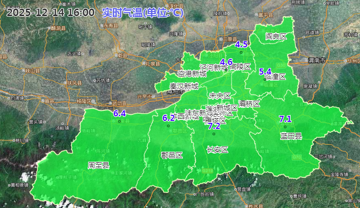 12月14日16时西安市气温实况色斑图