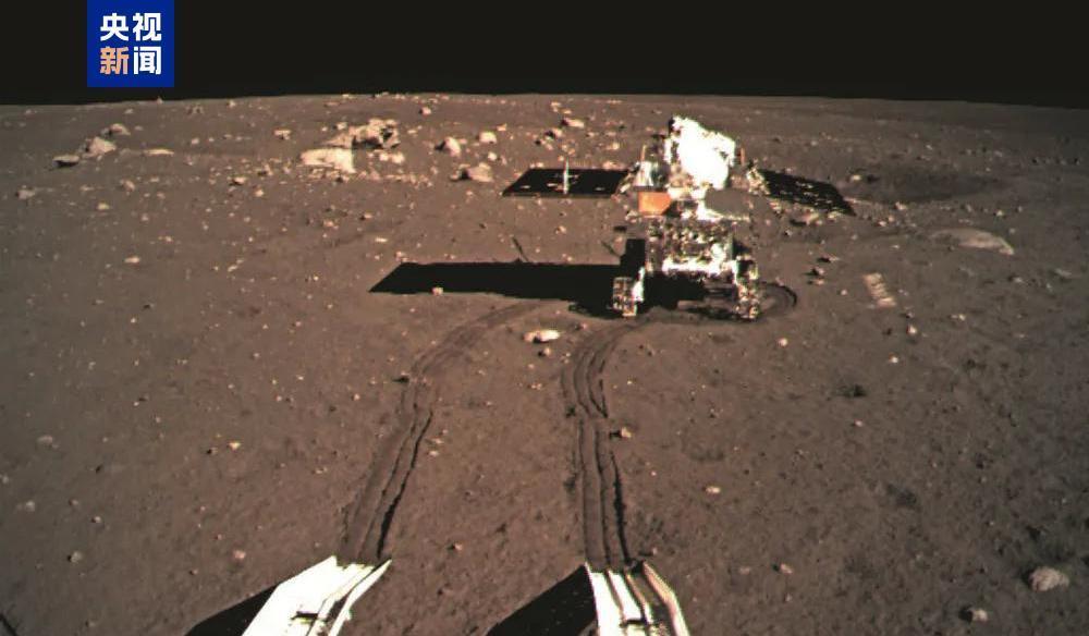 △中国月球车“玉兔号”在月表留下的第一行足迹。