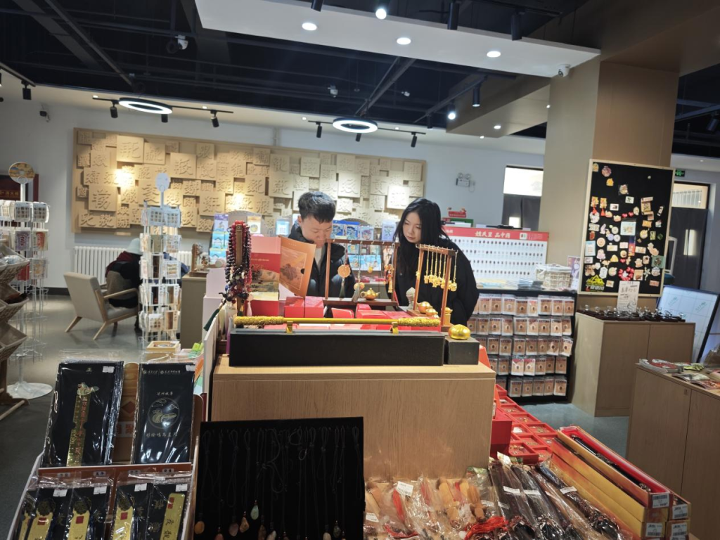 12月中旬的一天,游客在西夏陵景区选购文创产品。